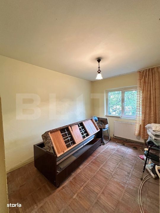 BLITZ vă oferă spre vânzare un apartament spațios, situat la parter înalt, într-un bloc din cărămidă construit în 1980, într-o zonă liniștită cu vecini de calitate și scară îngrijită. Locuința are o suprafață de 67 mp și este compartimentată eficient: trei camere separate, două băi și o bucătărie generoasă. Dispune de centrală termică proprie cu calorifere, este luminos și are un dormitor cu vedere spre o mică grădină ce poate fi folosită de viitorii proprietari - un plus de intimitate și spațiu verde. Apartamentul necesită modernizare, oferind însă potențial excelent de amenajare după gustul noului proprietar. La subsol sunt incluse două boxe spațioase, aerisite, una în fața celeilalte, de aproximativ 10 mp fiecare - ideale pentru depozitare. Imobilul este amplasat într-o zonă bine poziționată, aproape de cabinet veterinar, stomatolog, școală, magazin Profi non-stop și stații de autobuz - practic ai totul la câteva minute de mers pe jos. Disponibil imediat.