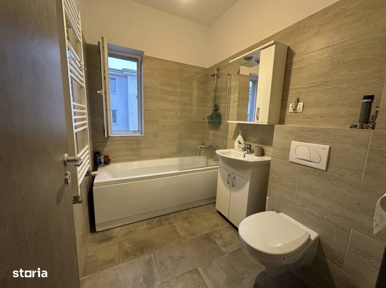 De închiriat apartament cu 2 camere la etajul 2 al unui bloc nou P+3. Apartamentul are o suprafață utilă de 53 mp + balcon. Beneficiază de centrală proprie, iar încălzirea se realizează prin pardoseală. Este compartimentat modern și eficient astfel: living spațios, 1 dormitor, bucătărie închisă, baie și balcon. Mobilat și utilat complet cu electrocasnice noi, mașina de spălat, cuptor, plită, frigider, tv etc. Proprietatea se află într-o zonă accesibilă aproape de magazine, stație de autobuz și alte facilități. Prima închiriere. Disponibilitate imediată.