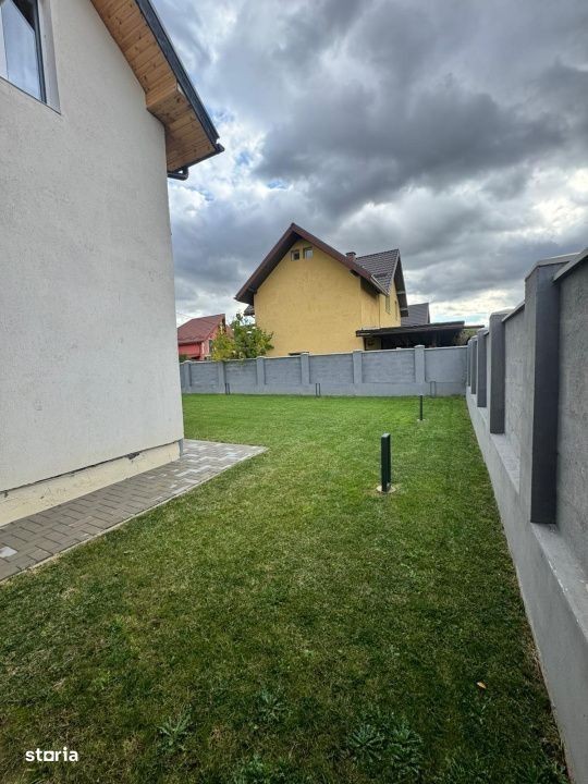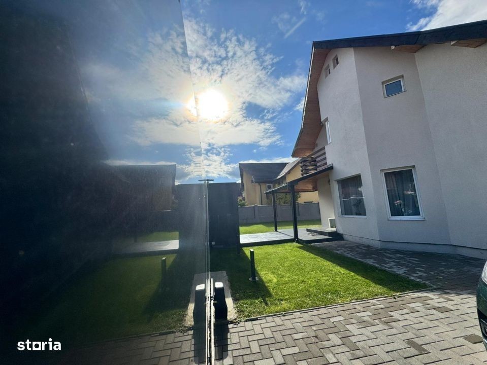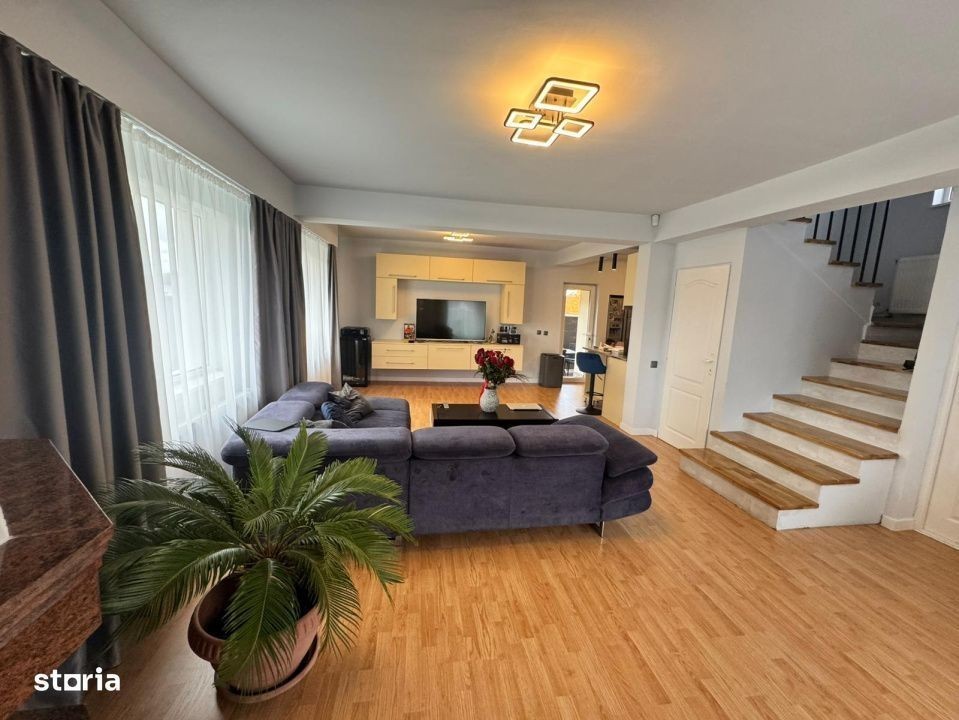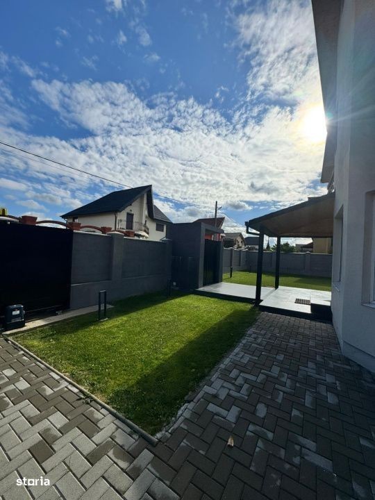 Blitz vă propune spre vânzare o proprietate deosebită, recent renovată (2024), situată într-o zonă rezidențială liniștită, ideală pentru cei care își doresc confort, intimitate și un stil de viață modern. Casa are o suprafață construită de 177 mp (78,17 mp parter + 78,17 mp etaj + garaj de 21 mp), fiind amplasată pe un teren de 404 mp, complet amenajat cu gazon și pavaj. Detalii și compartimentare: • Parter: living spațios și luminos, în regim open-space cu bucătăria, zonă de dining și acces direct către terasa exterioară. • Etaj: două dormitoare generoase, o baie mare cu cadă, un dressing încăpător și acces către podul util. Dotări și finisaje: • Finisaje moderne, realizate cu materiale de înaltă calitate; • Sistem inteligent de alarmă și control al porților (acces prin aplicație mobilă - poartă mică plus poarta garaj); • Sistem de climatizare inteligent - centrală termică, încălzire și aer condiționat controlabile de la distanță; • Izolație exterioara, acoperiș din tablă, geamuri termopan; • Trei locuri de parcare, dintre care două acoperite; • Curte amenajată cu gazon natural, pavaj și terasă perfectă pentru relaxare. Proprietatea oferă un mix echilibrat între funcționalitate, eleganță și confort, fiind alegerea perfectă pentru o familie care apreciază liniștea, spațiul și tehnologia modernă integrată în locuință. Avantaje suplimentare: • Casă renovată complet în 2024; • Sistem smart home integrat (climatizare, porți, alarmă); • Living open-space cu ferestre mari și lumină naturală abundentă; • Posibilitate de extindere în pod. Se poate achizitiona si cu un schimb de teren intravilan in zona (20 ari) plus diferenta