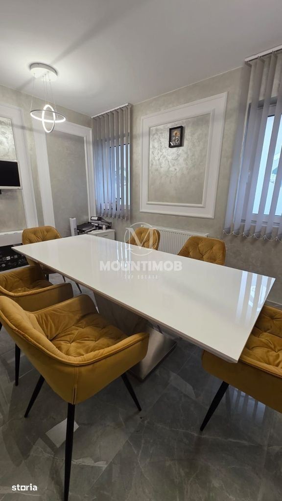 Spațiu de birouri modern, complet finisat, cu o suprafață utilă de 67 mp, situat în zona Tractorul - Brașov, într-o zonă cu acces rapid la Coresi și artere principale. Interiorul este amenajat într-un stil elegant și contemporan, cu finisaje de calitate superioară, cu mobilier modern, iluminat LED integrat, care pune în valoare spațiul, încălzire proprie, aerisire naturală, rețea internet și prize multiple. Spațiul este împărțit eficient în: -zonă open-space cu 5-6 posturi de lucru, -sală de ședințe elegantă, -bucatarie complet utilata si mobilata -grup sanitar propriu, multiple spații de depozitare. În pret este inclus si un loc de parcare. Este potrivit pentru firmă de consultanță, birou de arhitectură, agenție imobiliară, cabinet de avocatură, firmă IT sau showroom de prezentare. La momentul inchirierii se percepe plata chiriei in avans si garantie invaloarea unei chirii. Comision intermeiere imobiliara 50% din pretul chiriei Pentru mai multe detalii nu ezitati sa ma contactati.