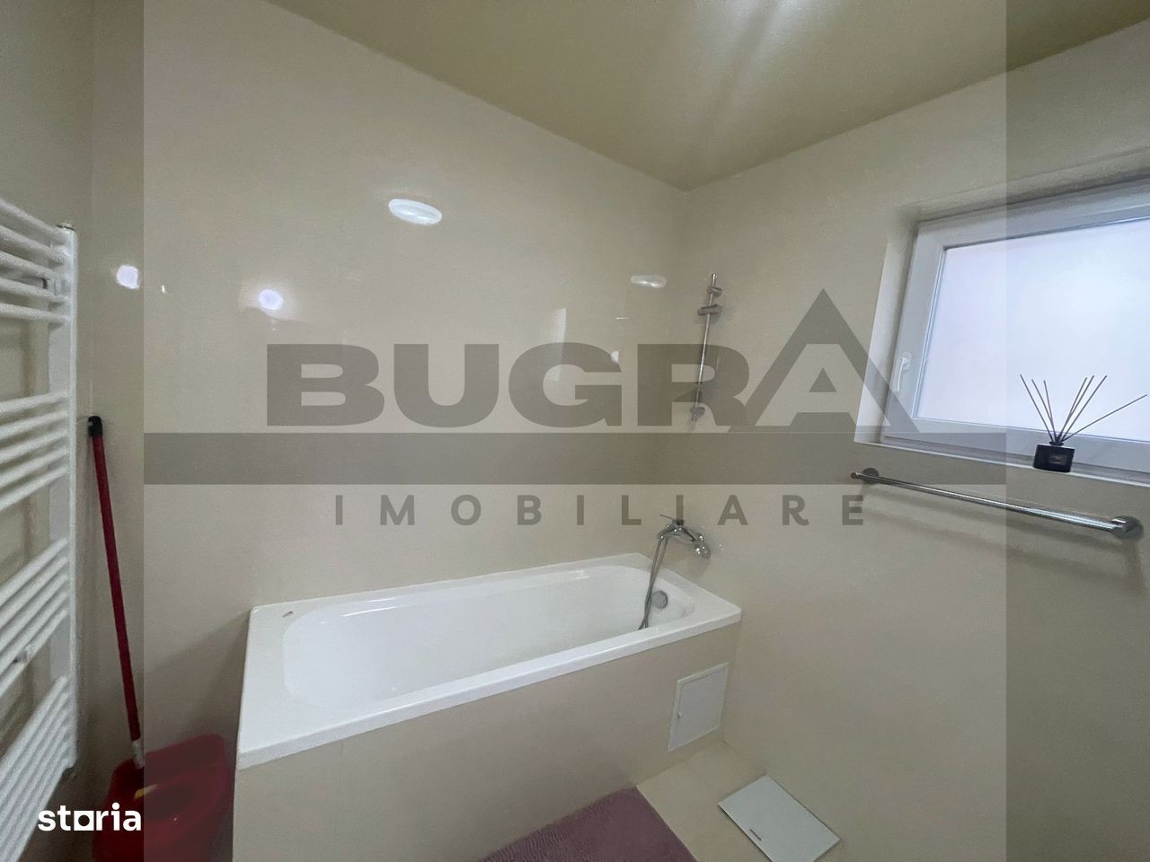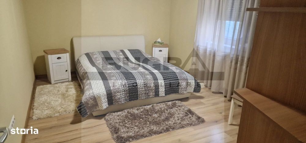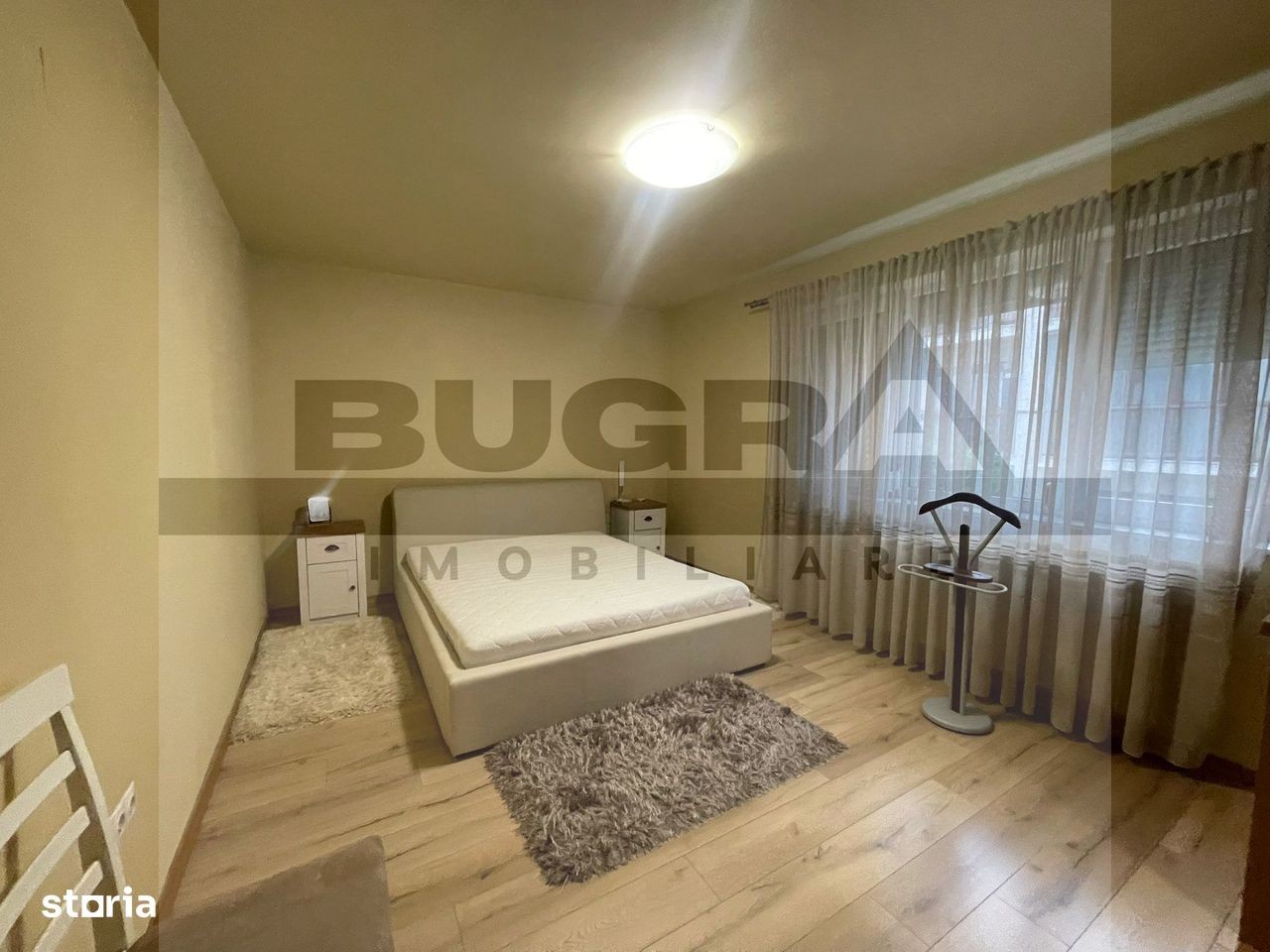 Bugra Imobiliare va ofera spre inchiriere un apartament de 4 camere, decomandat, cu o suprafata utila de 100mp + curte proprie de 120mp, mobilat si utilat modern, dotat cu toate cele necesare in vederea inchirierii pe termen lung. Apartamentul este compartimentat astfel: living cu bucatarie spatios, 3 dormitoare, 2 bai, 2 balcoane Acesta se afla la parterul inalt al unui bloc de 3 etaje, dispune in apropierea sa de mijloace de transport in comun si magazine alimentare specifice zonei. In pretul afisat se ofera si 2 locuri de parcare proprii. Unul exterior si unul subteran. Disponibil incepand cu 1 Noiembrie. Pana atunci, va asteptam la vizionare!