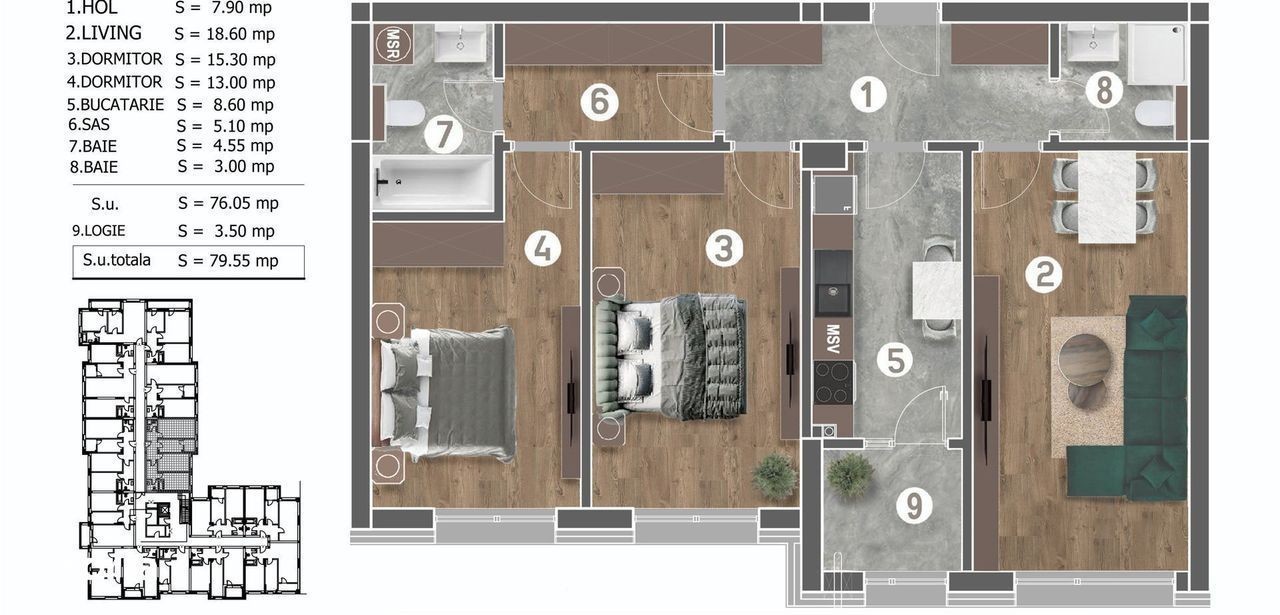 Vă propun un apartament modern de 3 camere, cu o suprafață utilă de 82.9 mp, situat într-un complex rezidențial nou. Ansamblul rezidențial este amplasat într-o zonă excelentă, aproape de centre comerciale, precum: Grand Arena, Jumbo, Auchan, Lidl, Metro, Kaufland etc., unități de învățământ, instituții medicale și spații verzi. Totodată, are acces rapid la mijloace de transport în comun, inclusiv autobuze și metrou, pentru deplasări facile în oraș. Imobilul este racordat la toate utilitățile publice: apă, canalizare, gaz, energie electrică. Apartamentul este ideal pentru cei care caută un spațiu bine compartimentat, modern și accesibil, potrivit atât pentru locuire, cât și pentru investiție. Achiziția se poate realiza integral sau prin orice tip de credit bancar, iar echipa noastră vă oferă consultanță gratuită pentru întocmirea dosarului de finanțare. Comision 0%! Fotografiile prezentate sunt cu titlu informativ. Pretul afisat nu contine TVA! Pentru mai multe detalii și vizionări: Marian Nut