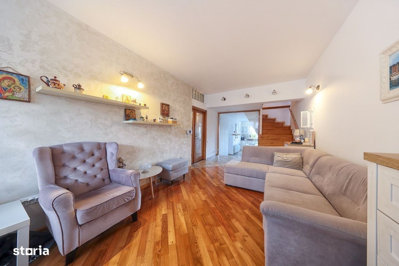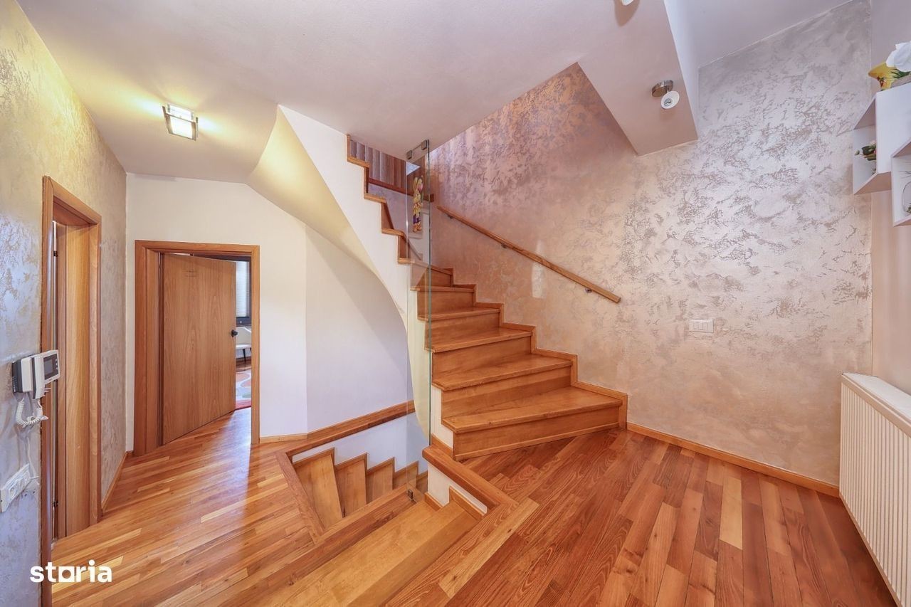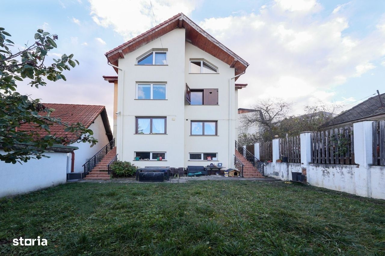 Te salut, vreau sa iti prezint un duplex modern situat pe strada Cloșca, într-una dintre cele mai frumoase și liniștite zone din Brașov. Cu o suprafață utilă de 220 mp și o curte interioara de 50 mp, această proprietate îmbină eleganța, funcționalitatea și o priveliște superbă asupra orașului. Imobilul are un regim de înălțime P+2E+M, fiind compartimentat inteligent pentru a oferi spațiu și confort: Parter: garaj generos, cameră de depozitare și cameră tehnică pentru centrală; Etajul 1: living spațios cu acces la balcon, bucătărie luminoasă, baie de serviciu și trecerea către curtea din spate - un loc perfect pentru relaxare în aer liber; Etajul 2: două dormitoare confortabile alaturi de o baie modernă; Mansardă: cameră de relaxare cu șemineu și a treia baie - un spațiu intim ideal pentru hobby-uri, birou sau zonă de divertisment. Amplasarea centrală oferă acces rapid către punctele de interes ale orașului, iar priveliștea asupra Brașovului completează perfect atmosfera caldă și rafinată a locuinței. Pret vanzare 459.990 Euro. Pentru mai multe detalii și programări la vizionare, Echipa New House In Town îți stă cu drag la dispoziție!