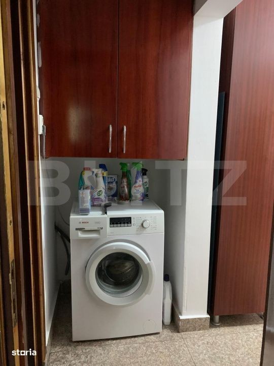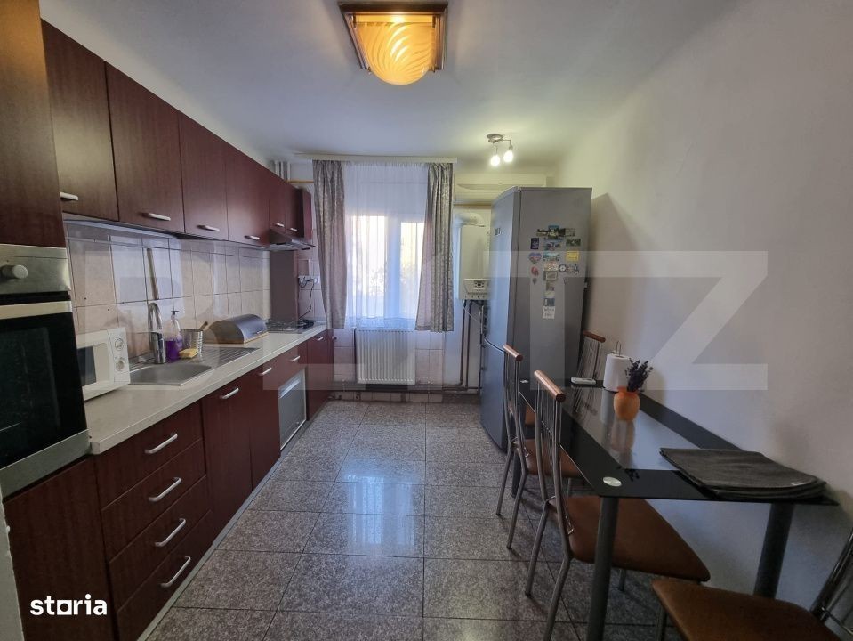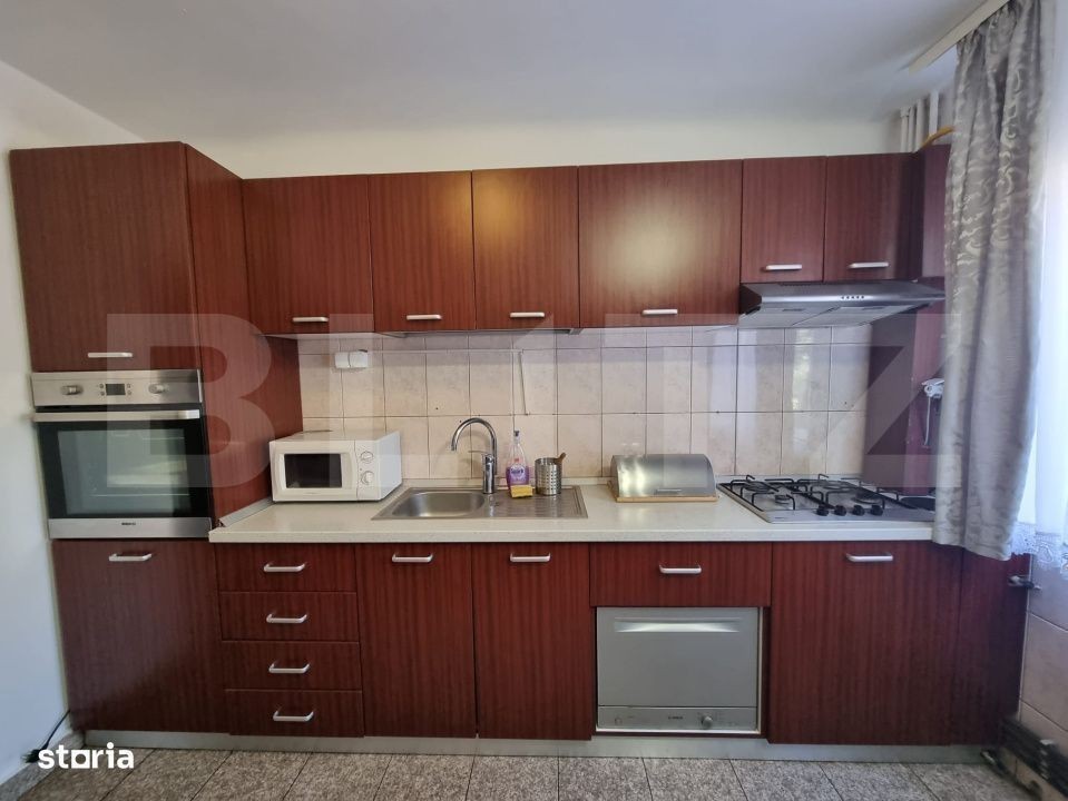 Blitz va ofera spre inchiriere apartament de 3 camere, 68 mp utili, zona Rovine. In proximitatea acestuia se gasesc magazine, restaurante, cafenele, farmacie, scoli, la doar 7 minute de Facultatea de Drept si Facultatea de Mecanica, Parculetul din Rovine, posta, Profi, Supeco si Carrefour. Accesul catre statiile de autobuz si taxi este unul foarte facil. Apartamentul este situat la etajul 1 al unui bloc de 4 niveluri, cu o vedere bilaterala, atat in fata cat si in spatele blocului, este decomandat, iar compartimentarea este dispusa astfel: 2 dormitoare, living, bucatarie spatioasa, 2 bai si un balcon inchis. Apartamentul este complet mobilat si utilat, si dispune de televizoare, masina de spalat rufe, aragaz, cuptor, hota, frigider, cuptor cu microunde, masina de spalat vase, aer conditionat si centrala termica. Animalele de companie nu sunt acceptate. Apartamentul este disponibil imediat. Vă aștept cu mai multe detalii la vizionare!