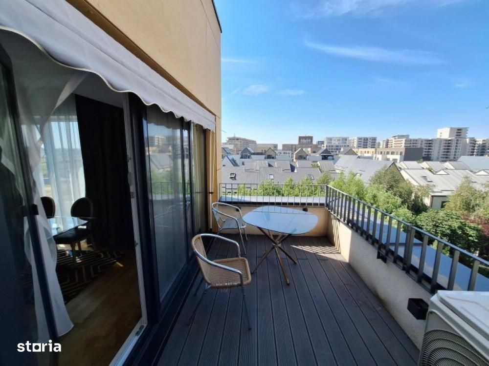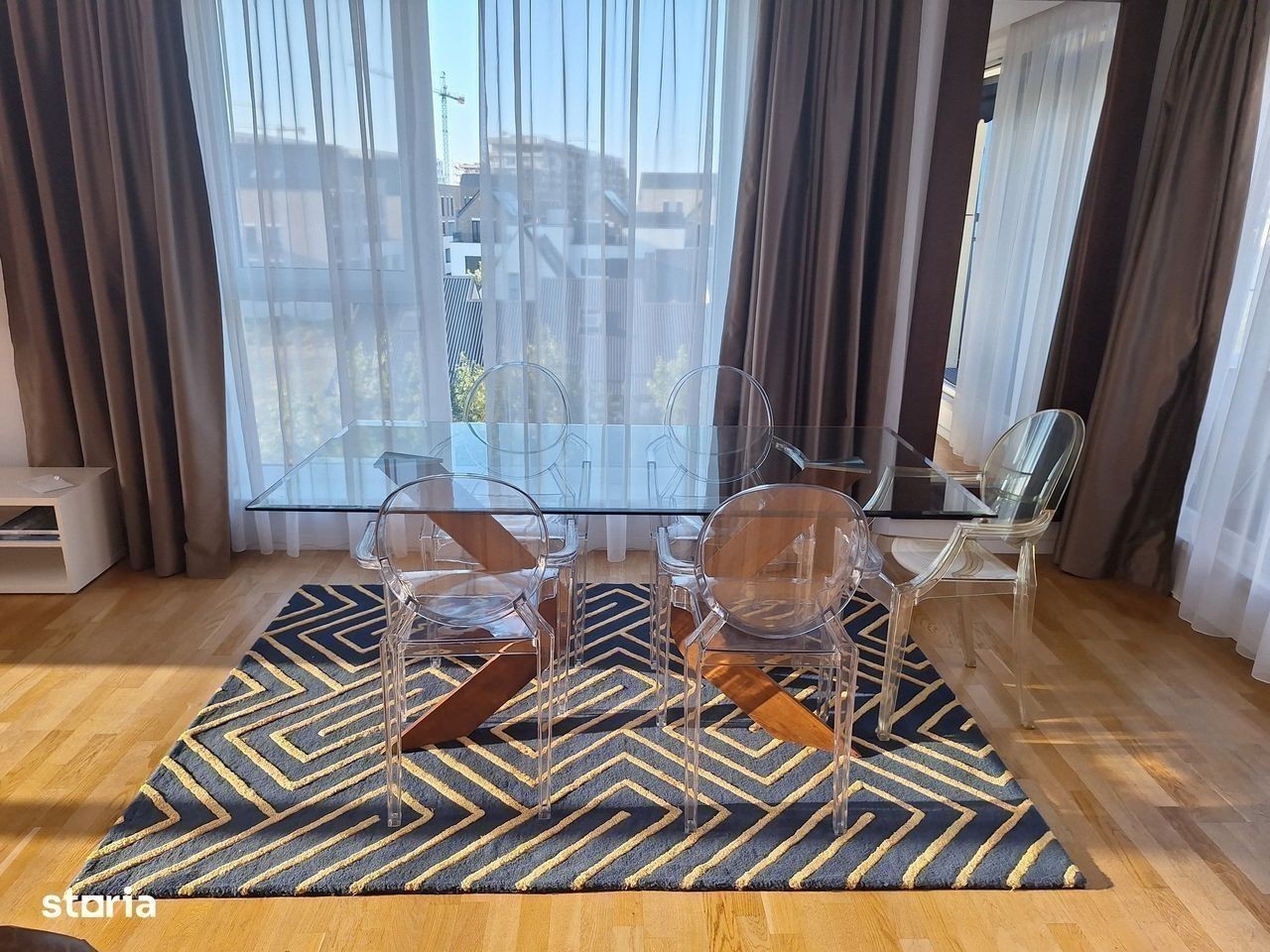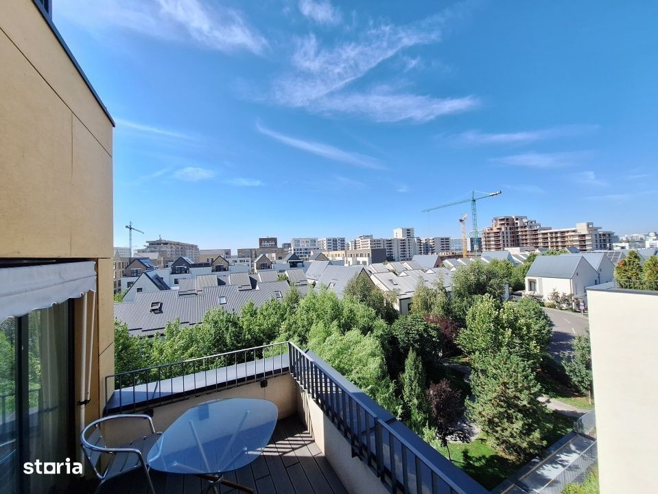 3 camere de închiriat, direct proprietar, luminos, verde, vedere spre sud către curtea complexului Catted Etaj 3 din 4, 2018, suprafață utilă 89 mp plus 9 mp terasă Mobilat, 2 băi, încălzire în pardoseală Un loc de parcare în subteran, loc de joacă Alee pietonală până la Pipera Plaza