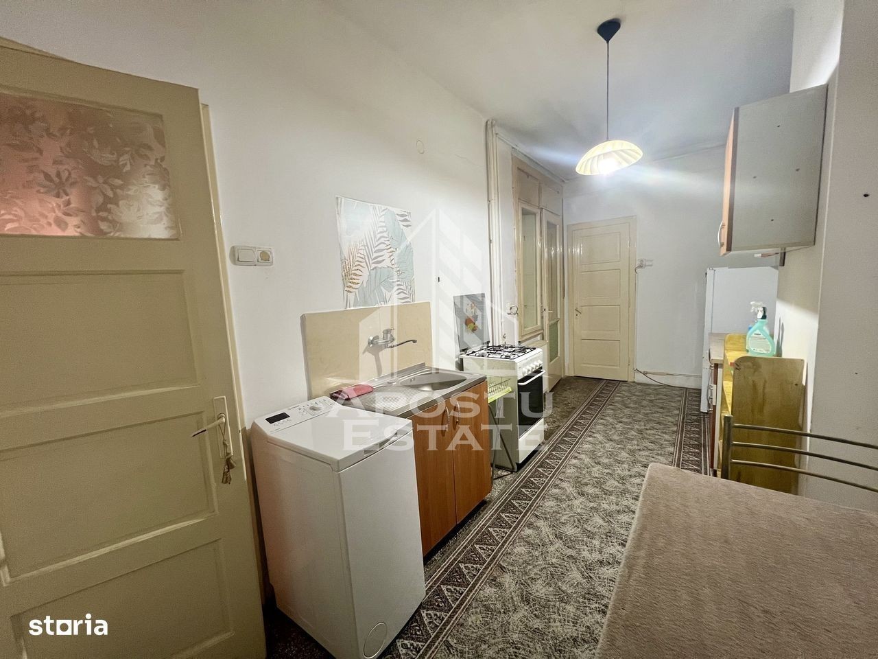APOSTU ESTATE va propune spre inchiriere un apartament cu 2 camere, situat intr-o zona linistita si bine conectata la principalele puncte de interes din Timisoara - zona Cetatii, la 1 km fata de Catedrala Mitropolitana și la 1 km fata de Universitatea de Vest din Timisoara. Apartamentul are o suprafata utila de 60 mp + cele 2 balcoane si este compartimentat eficient, oferind un spatiu ideal pentru un stil de viata practic si confortabil. Compartimentare: Living spatios si luminos 2 balcoane spatioase 1 dormitor primitor Bucatarie cu loc de luat masa Baie dotata cu toate cele necesare Confortul termic este asigurat prin centrala proprie. Localizarea in zona Cetatii ofera numeroase avantaje: acces rapid la mijloace de transport in comun, proximitate fata supermarketuri, farmacii, scoli si alte facilitati urbane. In acelasi timp, zona este linistita si sigura, perfecta pentru un trai relaxat. Apartamentul este potrivit persoanelor fumatoare, studentilor, cuplurilor, dar si familiilor. Chiria lunara este de 350 EUR, iar garantia solicitata este de 350 EUR. Daca esti in cautarea unui apartament functional si bine amplasat in Timisoara, te invitam cu drag la o vizionare! ID intern: CP2793065