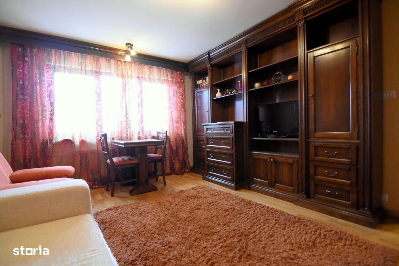 De inchiriat apartament cu 1 camera, renovat in anul 2020, situat in imediata vecinatate a ansamblului ISHO, cu acces rapid catre toate zonele de interes ale orasului. Spatiul interior prezinta finisari de calitate, precum: parchet, placaje cu gresie si faianta, tapet, ferestre cu profil Pvc si geamuri termopan, rulouri actionate electric. La nivelul baii, toate obiectele sanitare sunt noi. Usile sunt din lemn masiv. Incalzirea se realizeaza prin calorifere cu ajutorul retelei de termoficare, costurile de intretinere fiind mici. in luna aprilie se va instala o centrala termica proprie.