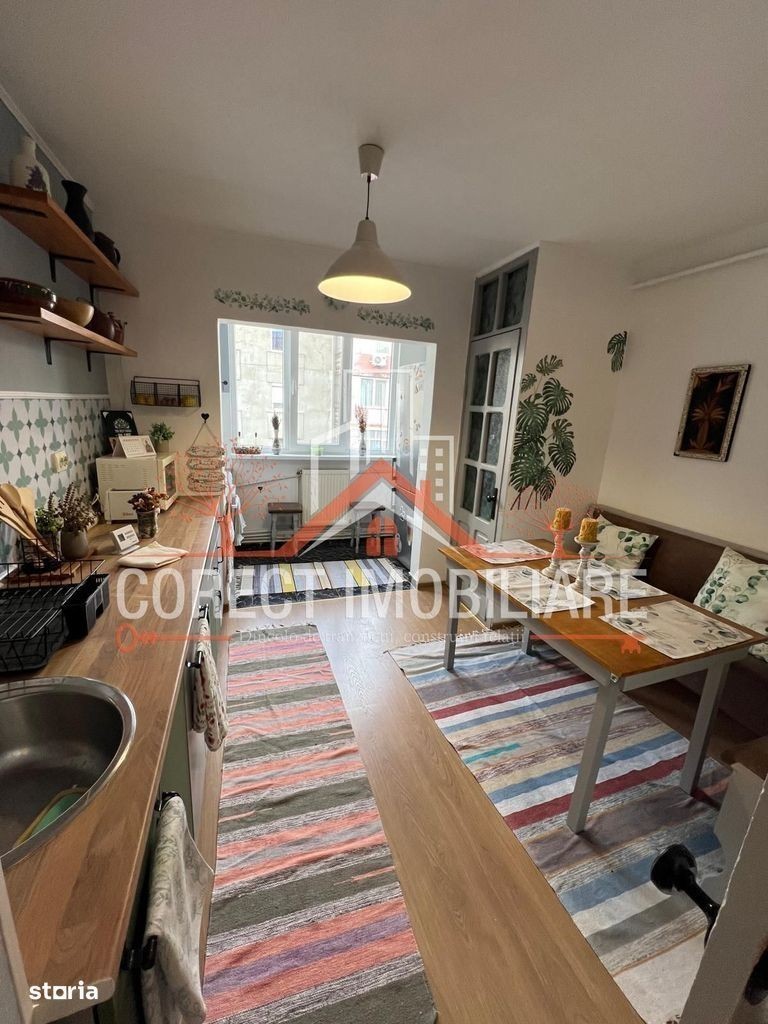 Apartament 2 camere - mobilat complet, zonă liniștită, Bistrița Disponibil acum pentru închiriere - 300 €/lună Corect Imobiliare vă propune spre închiriere un apartament luminos și primitor, situat într-o zonă liniștită și apreciată din municipiul Bistrița. Locuința este ideală pentru un cuplu sau o familie care caută confort, ordine și o atmosferă caldă, “de acasă”. Detalii principale: Suprafață utilă: aprox. 55 mp Compartimentare decomandată Living spațios amenajat cu canapea colțar, mobilier din lemn masiv și decor clasic Dormitor luminos cu mobilier modern și spațiu generos de depozitare Bucătărie închisă, complet mobilată și utilată, cu zonă de luat masa Baie curată și renovată Hol generos cu spațiu pentru depozitare și mașină de spălat Dotări și beneficii: Complet mobilat și utilat Finisaje în nuanțe calde, atmosferă plăcută Parchet laminat pe toată suprafața Bloc îngrijit, vecinătate liniștită Acces facil către magazine, transport public și zone verzi Chirie: 300 €/lună Pentru detalii și vizionare: Corect Imobiliare -