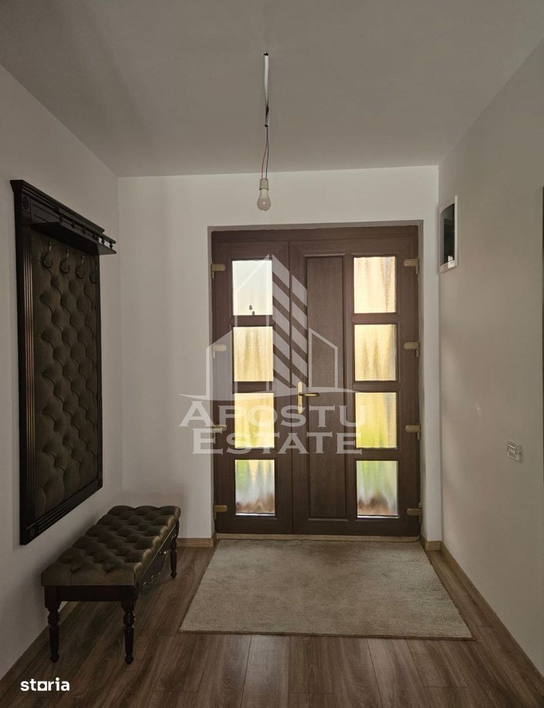Apostu Estate va ofera spre vanzare Casa individuala in zona foarte buna,Cartier Europa,Moanita Noua. Constructie anul 2022,ridicata pe regim de inaltime P+E,avand ca dotari izolatie exterioara,tamplarie Tripan,finisaje de calitate superioara,piscina exterioara din beton.Curtea este amenajata,expresoare,gazon,beton amprentat si zona de grill. Constructie din caramida,cu o suprafata utila de 170 mp,teren generos de 612 mp. Terasa acoperita,pozitionata chiar aproape de piscina.Curtea este imprejmuita cu gard de beton,ofera intimitate. Garaj direct cu intrare in casa,cu poarta electrica. Compartimentare: Parter: -hol de acces -bucatarie open space cu dinning si living -dormitor -grup sanitar Etaj: -hol de acces -3 dormitoare -2 grupuri sanitare Va asteptam cu drag la o vizionare !mai multe detalii la telefon.