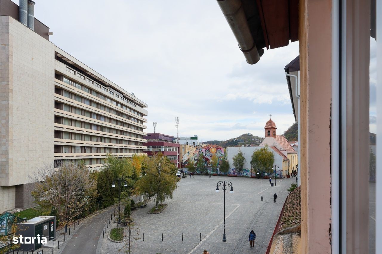 Va prezentam un apartament cu adevarat special, situat la mansarda unei clădiri cu regim de înălțime P+2+M, chiar în inima Brașovului, în Piața Sfântul Ioan, la doar câțiva pași de Strada Republicii și Piața Sfatului. Cu o suprafață utilă de 65 mp, apartamentul este compartimentat circular în două camere spațioase, oferind o atmosferă caldă și primitoare. Spațiul este complet mobilat și utilat, fiind pregătit pentru mutare imediată.