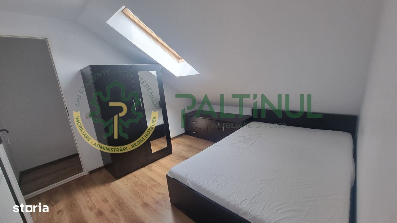 AMPLASAMENT: Imobilul este situat in zona Mihai Viteazu, intre blocuri, zona linistita, foarte bine cotata pe piata imobiliara, cu acces usor la centrul Sibiului, in imediata apropiere a punctelor de interes public, precum: magazine alimentare Simpa, Trans Agape, farmacii Catena, Polisano, Sensiblu, Reteta, parc de joaca pentru copii, institutii de invatamant - Şcoala Nicolae Iorga, Liceul Teoretic „Constantin Noica”, institutii financiar - bancare: ING, Intesa San Paolo, Banca Transilvania, CEC Bank, Banc Post, BCR, BRD, statie de TAXI, mijloace de transport in comun pentru traseele 11, 14, 15, 1. DESCRIERE: Mansarda se afla la la etajul 5 al unui imobil construita in 2012, cu o suprfata utila de aprox. 46 mp utili fiind construita pe 2 nivele. Imobilul este compartimentat dupa cum urmeaza: in partea de jos bucatarie si living open space, din living iesire pe balcon, la etaj un dormitor si baie cu geam de aerisire si cada de baie. ALTE DETALII: Mansarda beneficieaza de urmatoarele imbunatatiri: geamuri termopan, usa metalica la intrare, parchet laminat, gresie si faianta. Imobilul se inchiriaza mobilat si utilat.
