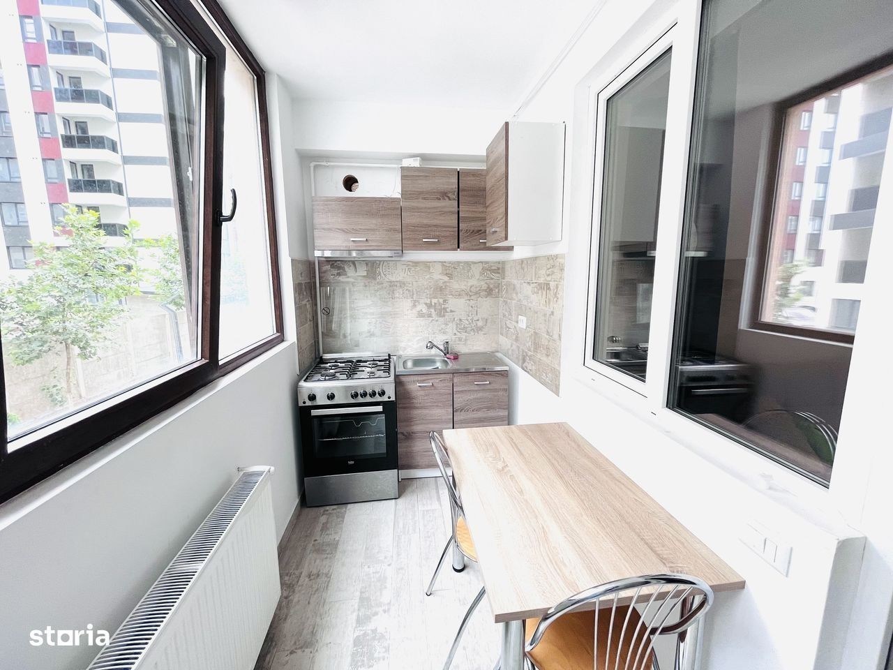 EXCLUSIV LA RIMO! Agentia noastra va propune o oferta unica pentru un apartament cu 2 camere situat intr-un bloc nou din Chiajna, cartierul Militari Residence pe strada Sergent Ilie Petre. Zona este una linistita, departe de aglomeratia urbana, trafic, poluare si zgomot. Blocul a fost construit in anul 2018, are 7 etaje, o scara curata si locatari decenti. Apartamentul este situat la parter inalt, avand o pozitie foarte buna in cadrul blocului. Este foarte luminos, dar si foarte calduros iarna. Suprafata totala a apartamentului este una foarte generoasa, de 40mp. Este format din dormitor, living, baie si balcon transformat in bucatarie. Este mobilat modern cu mobila executata pe comanda in fiecare incapere. Astfel, dormitorul dispune de pat cu saltea si dressing, livingul de canapea extensibila, mobila de perete, mobilier de colt, birou si TV, baia dispune de cada si masina de spalat, iar bucataria de aragaz cu hota, frigider, centrala termica, masa, corpuri de mobila cu chiuveta incorporata. SE VINDE EXACT CUM ESTE PREZENTAT IN POZE! NU EZITATI SA NE CONTACTATI!