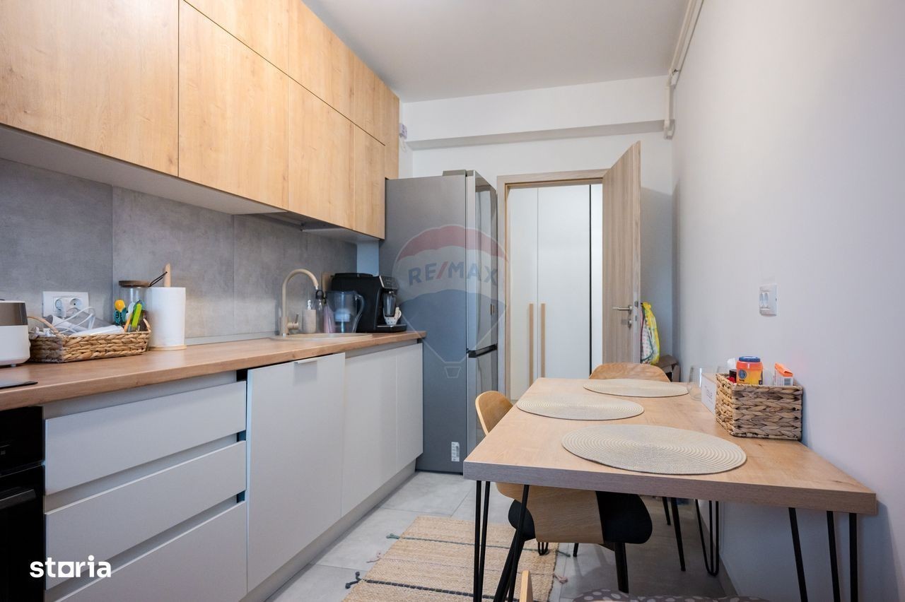Unele locuri se simt „acasă” din prima clipă - mai ales când au tot ce trebuie, deja pregătit pentru tine. Acest apartament de 2 camere din Grandis Residence, pe strada Ștefan Baciu 64, îți oferă tot ce ai nevoie pentru a te muta imediat. - 60 mp utili, bine împărțiți, cu două băi și un balcon generos de 12 mp. - Este situat la etajul 4 din 5, într-un bloc modern, prevăzut cu lift ce coboară direct în parcarea subterană. - Orientare estică - dimineți luminoase și temperatură plăcută pe tot parcursul verii. - Clasă energetică A - eficiență și costuri reduse la întreținere. Compartimentare: - hol cu spații generoase de depozitare, - dormitor, - living, - două băi, - balcon de 12 mp. Parcare subterană inclusă - fără grija locului de parcare. Se vinde complet mobilat și utilat, cu electrocasnice premium: aragaz, cuptor Electrolux, frigider Samsung, mașină de spălat vase Bosch, mașină de spălat rufe, uscător și aer condiționat Bosch. Totul este pregătit pentru confort și eficiență. Tractorul - Grandis Residence este într-o zonă vibrantă, în plină dezvoltare și apropiere de tot ce contează: magazine, Coresi Mall, cafenele,etc. Dacă vrei un apartament luminos, modern și gata de mutare, s-ar putea ca acesta să fie exact ce cauți. Dacă te-am făcut curios/curioasă, te aștept să mă contactezi pentru mai multe detalii sau chiar o vizionare.