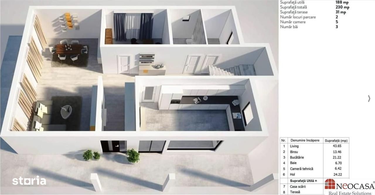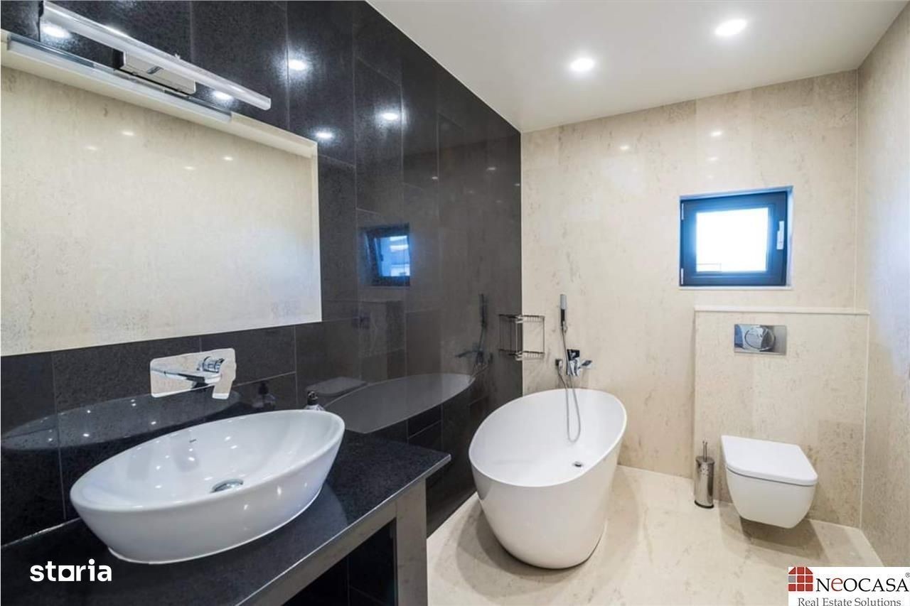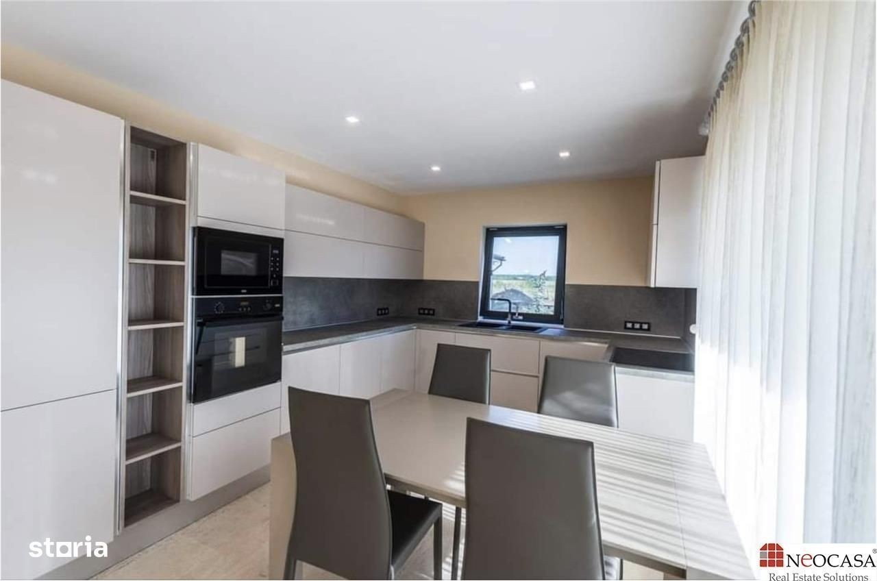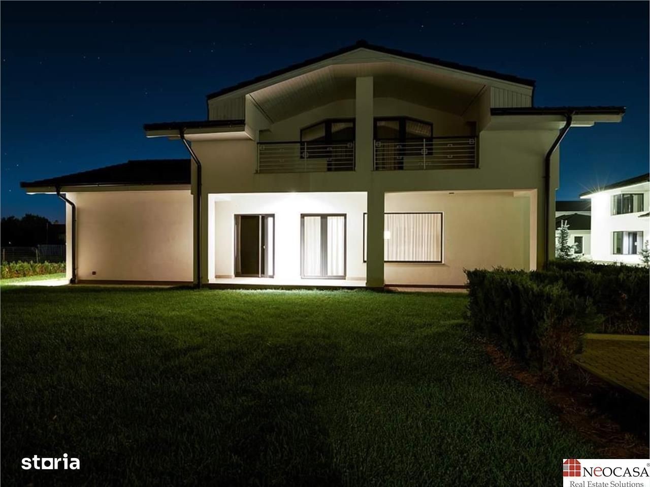 Neocasa ofera spre vanzare o locuinta unica, construita in sistem de tip „casa activa, total independenta si asistata IT, care imbina perfect eficienta energetica ridicata cu confortul modern. Aceasta casa impresionanta, cu o suprafata construita de 230 mp, se afla pe un teren de 625 mp si ofera o gama de facilitati de top, inclusiv un sistem de pompa de caldura pentru incalzire in pardoseala, racire si furnizare de apa calda. Totodata, casa dispune de curent trifazic, canalizare si epurare, asigurand un nivel de confort si functionalitate desavarsit. Amplasata intr-un microcartier exclusivist, Satul Scandinav, casa beneficiaza de spatii de folosință comune (drumuri private, piscina, zona de barbeque) si iesire directa la lac si padure, oferind un cadru natural deosebit. In plus, locatia este ideala, avand acces rapid la facilitati comerciale de top, cum ar fi Lidl, Mega Image, scoli, restaurante si multe altele, fiind la doar 10 minute de autostrada A3 (Petricani - București Nord). Casa se desfasoara pe doua nivele, cu o compartimentare inteligenta si spatii generoase. Aceasta casa este un exemplu perfect de design modern si functionalitate. Finisajele de cea mai inalta calitate includ zugraveala Caparol, bucatarie Rovere complet echipata, iar baile sunt mobilate si utilate cu materiale premium. Materialele naturale folosite in finisaje - marmura, granit si parchet - adauga un aer sofisticat si elegant intregii locuinte. Construita pe cadre, cu eliminarea punților termice față de sol, casa beneficiaza de caramida Poroterm si izolatie in fata ventilata cu vata bazaltica, iar acoperisul este realizat cu tigla Creaton. Feroneria din aluminiu Alumil asigura un nivel ridicat de eficienta energetica, iar sistemul de incalzire-racire Uponor este perfect integrat. De asemenea, locuinta dispune de pompa de caldura Nibe, instalatie electrica Le Grand si sisteme moderne de preluare ape fluviale. Casa este dotata cu puțuri de apă proprii (inclusiv apa potabila) si un sistem de irigare Rainbird pentru gazon, asigurand astfel intretinerea impecabila a curtii. Gardul viu tuia ofera intimitate si creeaza un mediu linistit si placut in jurul casei. Aceasta casa reprezinta o oportunitate rara de a trai intr-o comunitate selecta, intr-o locuinta care combina perfect tehnologia de varf, eficienta energetica si confortul sporit. Cu un design modern, materiale de inalta calitate si o locatie deosebita, aceasta este locuinta ideala pentru cei care doresc sa se bucure de un stil de viata sustenabil, intr-un cadru natural si accesibil.