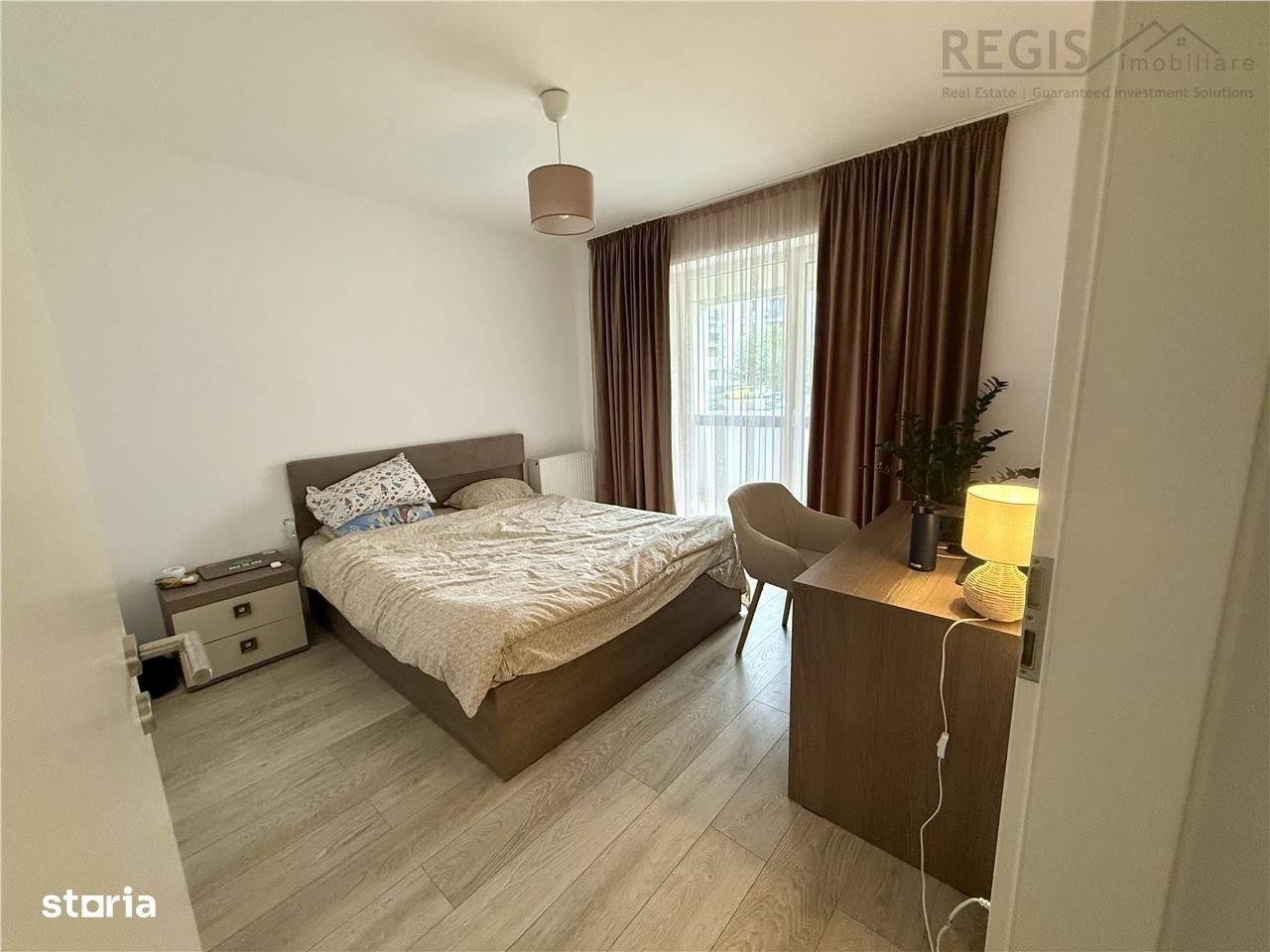 ID: 5878. REGIS Imobiliare va propune spre inchiriere un apartament cu 3 camere, decomandat, situat la parter, complet mobilat si utilat, cu 2 balcoane si 2 bai, parcare si boxa, in zona Coresi Kasper. Locuinta este ideala pentru cei care cauta un spatiu generos, modern, aflat intr-o cladire noua, cu acces rapid la magazine, transport public, restaurante si alte facilitati urbane din zona. Compartimentare: - Living spatios cu acces la balcon - Bucatarie inchisa, complet echipata: aragaz, cuptor, hota, frigider - 2 dormitoare luminoase, mobilate complet, unul cu acces balcon - 2 bai, una dotata cu masina de spalat rufe - hol generos cu dressing - 2 balcoane, cu acces din living si dintr-un dormitor - Spatii de depozitare bine organizate Facilitati: - Apartament situat la parter, ideal pentru familii sau persoane care prefera accesul facil - Complet mobilat si utilat modern - Cladire noua, cu acces securizat - Boxa si loc de parcare inclus Conditii de inchiriere: - Inchiriere pe termen lung (minim 12 luni) - Garantie: echivalentul unei chirii lunare - Disponibil din 13 octombrie Pentru mai multe detalii sau pentru a programa o vizionare, nu ezitati sa ne contactati. Comisionul agentiei este de 50% + TVA din prima chirie Andreea, Consultant Imobiliar