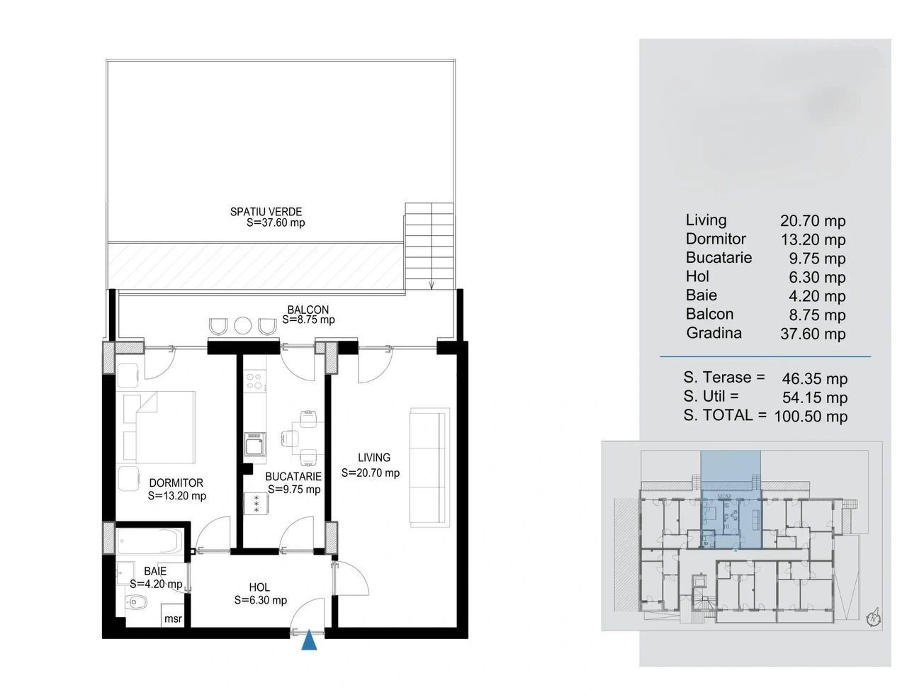 Iti place sa petreci timp in aer liber si esti in cautarea unui apartament modern cu gradina generoasa? Si cu finisaje de calitate? Si aproape de metrou? Apartament cu 2 camere decomandat cu terasa si gradina, avand o suprafata utila de 62.9 mp, un balcon de 8.8 mp si o gradina generoasa de aprox 38 mp, la un pret excelent. Situat intr-un ansamblu rezidential cu regim redus de inaltime Ds+P+4E dotat cu un lift modern si silentios, parcare subterana si spatii verzi amenajate. Imobil realizat din beton armat cu inchideri exterioare si intre apartamente din caramida Porotherm de 30 cm, inchideri interioare de 11.5 cm, si izolatie din Polistiren aEPS80. Eficienta energetica a apartamentului este data de: - Incalzire in pardoseala. - Spatiile vitrate mari care asigura o iluminare naturala deosebita in toate camerele - Tamplarie PVC Salamnder/Veka 7 camere cu geam tripan. - Centrala termica proprie ce permite contorizarea individuala. Apartamentul se preda gata de mutare cu posibilitatea de a personaliza locuinta dupa preferintele tale, cu finisaje la alegere: - Gresie si faianta la alegere dintr-un paletar extins, aspect marmura/granit, stejar, etc - Parchet laminat, usi interioare din lemn Pinum - Usa de intrare antiefractie Pinum Blindo - Obiecte sanitare moderne Grohe/Roca, inclusiv vas WC incastrat. Locatie Excelenta: Supermarket, cafenea, restaurant, coafor, petshop si multe altele in imediata apropiere Gradinita si scoala gimnaziala de stat la numai 5 minute de mers pe jos. Statia de metrou este situata la 15 minute de mers pe jos. Pretul afisat nu include TVA. Posibilitate achizitie si prin credit ipotecar. Posibilitate discount de pana la 6000 Euro. Poze cu tiltu de prezentare. Direct Dezvoltator Zero Comision. Hai sa gasim apartamentul potrivit pentru tine si familita ta! VAUNT ID: 104391