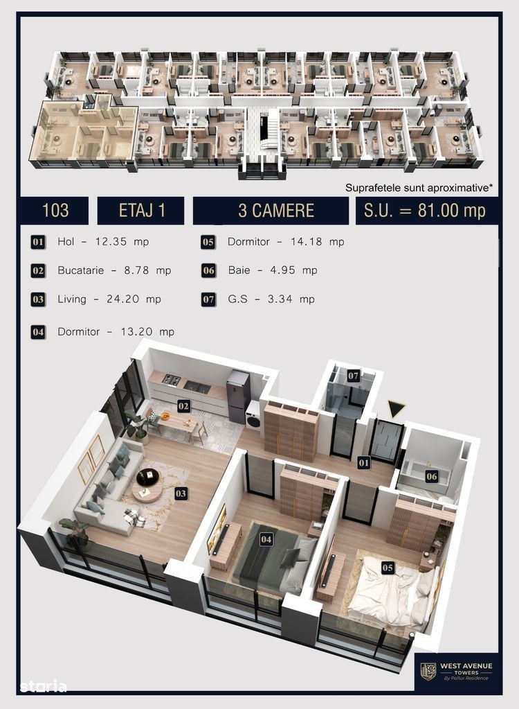 West Avenue Residence by Pollux Residence Avem disponibile apartamente de 2 si 3 camere, cu compartimentări generoase, ferestre panoramice și fațadă ventilată BOND - material ignifug și premium.
