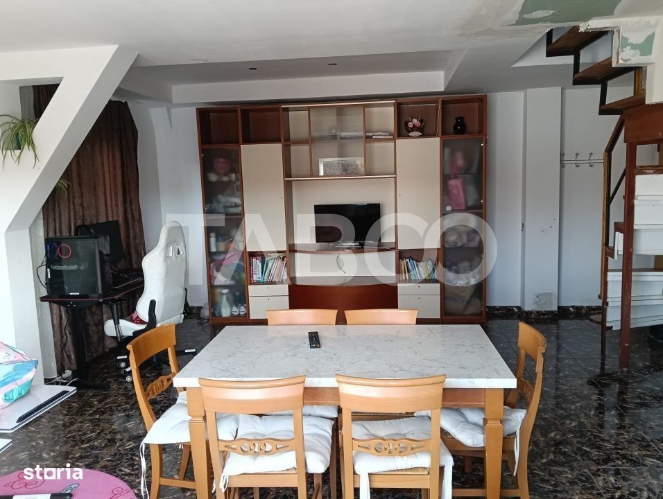 Agenția imobiliară GRN Top Invest vă propune spre vânzare un apartament cu 3 camere situat la mansardă, în zona Valea Aurie, una dintre cele mai căutate zone rezidențiale din Sibiu Imobilul are o suprafață construită de aproximativ 75 mp, din care 62 mp utili, și este amplasat la etajul 5 5 al unui bloc izolat termic Apartamentul este dispus pe două nivele. La primul nivel se află un hol de acces, living open space cu bucătăria, acces pe balcon și baie dotată cu cabină de duș. La al doilea nivel se află două dormitoare decomandate, luminoase și bine compartimentate Este dotat cu parchet, gresie, faianță, uși interioare din lemn, ușă metalică la intrare, geamuri termopan și centrală termică proprie. Se vinde complet mobilat și utilat, cu toate electrocasnicele necesare: aragaz, hotă, cuptor, mașină de spălat rufe etc Zona Valea Aurie este una de mare interes, oferind acces facil către școli, grădinițe, centre comerciale, farmacii, bănci și mijloace de transport în comun. Este o alegere excelentă atât pentru locuință proprie, cât și pentru investiție Preț de vânzare: 75.000 Euro - negociabil ID ofertă: GRN1678