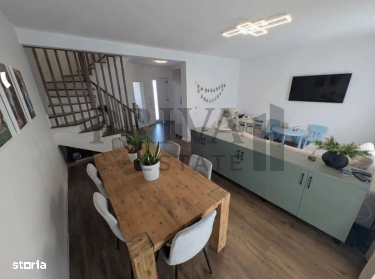 Casa noua tip Duplex de vânzare mobilata si utilata Giroc Casa este situată într-o zonă liniștită și sigură, ideală pentru familii cu copii. Acces pe drum pietruit până în fața casei Aproape de grădiniță, în spatele DAF Acces facil către Timișoara și centura rutieră Compartimentare și dotări: Bucatarie inchisa, 2 bai, 3 dormitoare, living spațios, terasa. Parter: Bucătărie mare, închisă (12,5 mp), cu insulă și loc de luat masa Mobilier la comandă Electrocasnice premium: plită AEG, cuptor Bosch, hotă Turbionnaire, mașină de spălat vase Whirlpool MaxiSpace, combină frigorifică Samsung 508 L, baterie și chiuvetă Franke Baie cu duș Hol spațios și scară din lemn masiv cu balustradă și riflaje. Mobilier pentru depozitare și cuier Living 26 mp, luminos, cu geamuri mari și ieșire pe terasă; canapea Mobelhaus (material premium, rezistent la lichide și ușor de întreținut) Terasă generoasă de aproximativ 18 mp Etaj: Dormitor matrimonial cu dressing (13 mp) Două dormitoare secundare (12,2 mp fiecare) Baie mare cu cadă și mașină de spălat smart LG Hol spațios cu mobilier pentru depozitare și acces la pod înalt, izolat, cu spațiu generos Aer condiționat LG 18.000 BTU Rulouri exterioare la toate dormitoarele Finisaje și instalații Izolație cu polistiren și tâmplărie tripan Salamander Încălzire în pardoseală, centrală Immergas, distribuitoare cu pompă pe fiecare etaj Termostate de ambient în fiecare cameră și bucătărie Pardoseală SPC Berry Alloc, dedicată pentru încălzirea în pardoseală și rezistentă la apă Gresie și faianță Cersanit Love you navy Uși Porta Doors premium Instalație electrică cu panou separat pe fiecare etaj, siguranțe diferențiale, circuite dedicate pentru consumatori mari, aparataj Gewiss TV + Internet în fiecare cameră Curte și exterior Teren total: 250 mp Locuri de parcare în curte și în fața casei Terasa mare (16mp) acoperita si incasetata, se poate închide Partea din față este amenajată cu flori și marmură mărunțită, pentru un aspect elegant și îngrijit În spate: gazon, foraj propriu, pompă și aspersor automat programat pentru irigații Zonă liniștită, ideală pentru familii cu copii Pregătită pentru camere video, video-interfon, automatizare poarta si sistem de alarma Alte detalii Utilități: apă, gaz, curent, fibră optică Obiecte sanitare premium: Grohe, Hansgrohe, Ideal Standard pentru eleganță, calitate și economie Mobilier la comandă, inclusiv în băi Totul este nou și in garanție ne-am mutat la începutul lunii august Se vinde complet mobilată și utilată Pret 195.000 euro.