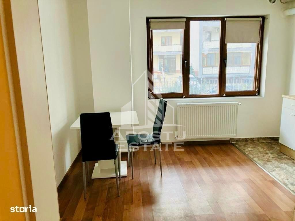 APOSTU ESTATE vă propune spre închiriere un apartament modern cu 1 camera ideal pentru cupluri sau o familie la inceput de drum Suprafață utilă: 39 mp Compartimentare eficientă: Bucătărie complet mobilată și utilată, cu loc de luat masa Living luminos cu tv Baie cu cada și ventilatie artificiala Confort și facilități: Centrală termică proprie pe gaz Terasa generoasa Loc de parcare inclus in pret Apartamentul este complet mobilat si utilat Localizare: Zona Torontalului - în apropiere de magazine, școli, gradinite și mijloace de transport în comun. Ideal pentru: Cupluri Familie la inceput de drum Profesioniști care lucrează remote sau au nevoie de birou acasă Preț chirie: 345€ Programează o vizionare! ID intern: CP2796264