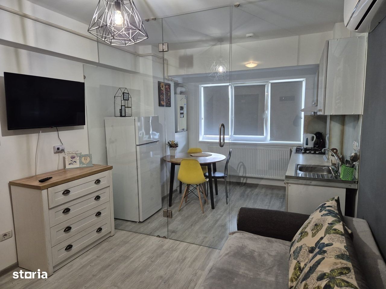 Oferim spre achizitie intr-un bloc nou, dat in folosinta 2020, la 200m de centrul comercial Mall, un apartament tip studio, in suprafata de 42 utili ce include si balconul. Credem ca toata lumea cunoaste potentialul investitiei unui imobil in aceasta zona. Daca doriti sa locuiti, va puteti bucura de toate conditiile pe care le poate oferi un apartament situat intr-un bloc nou, iar ca investitie, zona aduce cel mai semnificativ venit daca este inchiriat pe termen scurt sau lung. Se vinde complet mobilat si utilat. Posibiltate de cumparare sau inchirere a locului de parcare, securizat cu bariera. Pentru spatii de depozitare, se pot cumpara boxe la subsol. In acelasi bloc mai este disponbil, un alt apartament identic ca suprafata, la fel de frumos