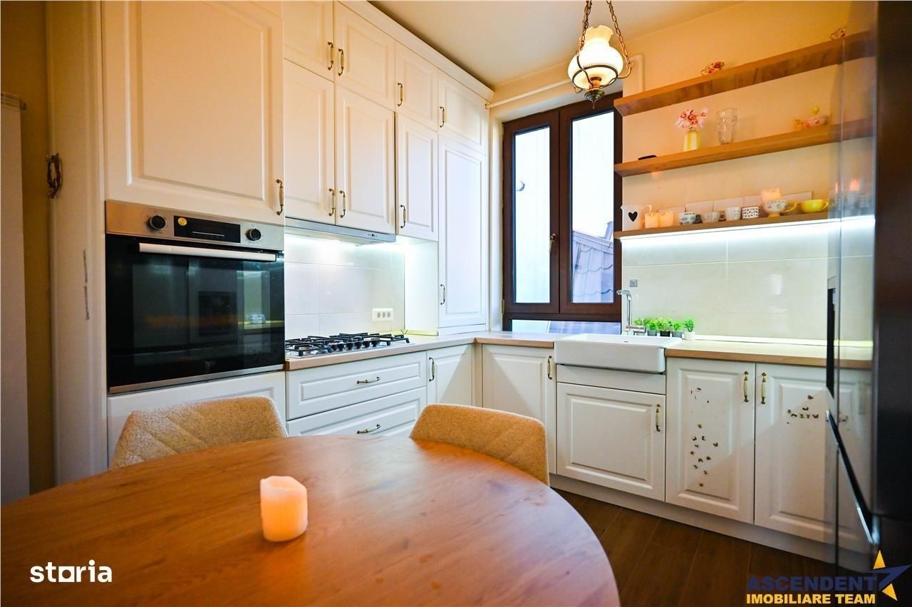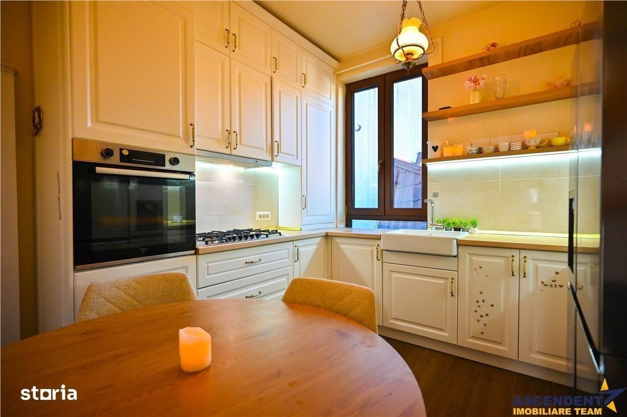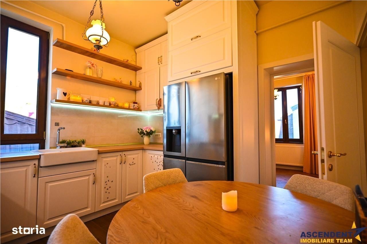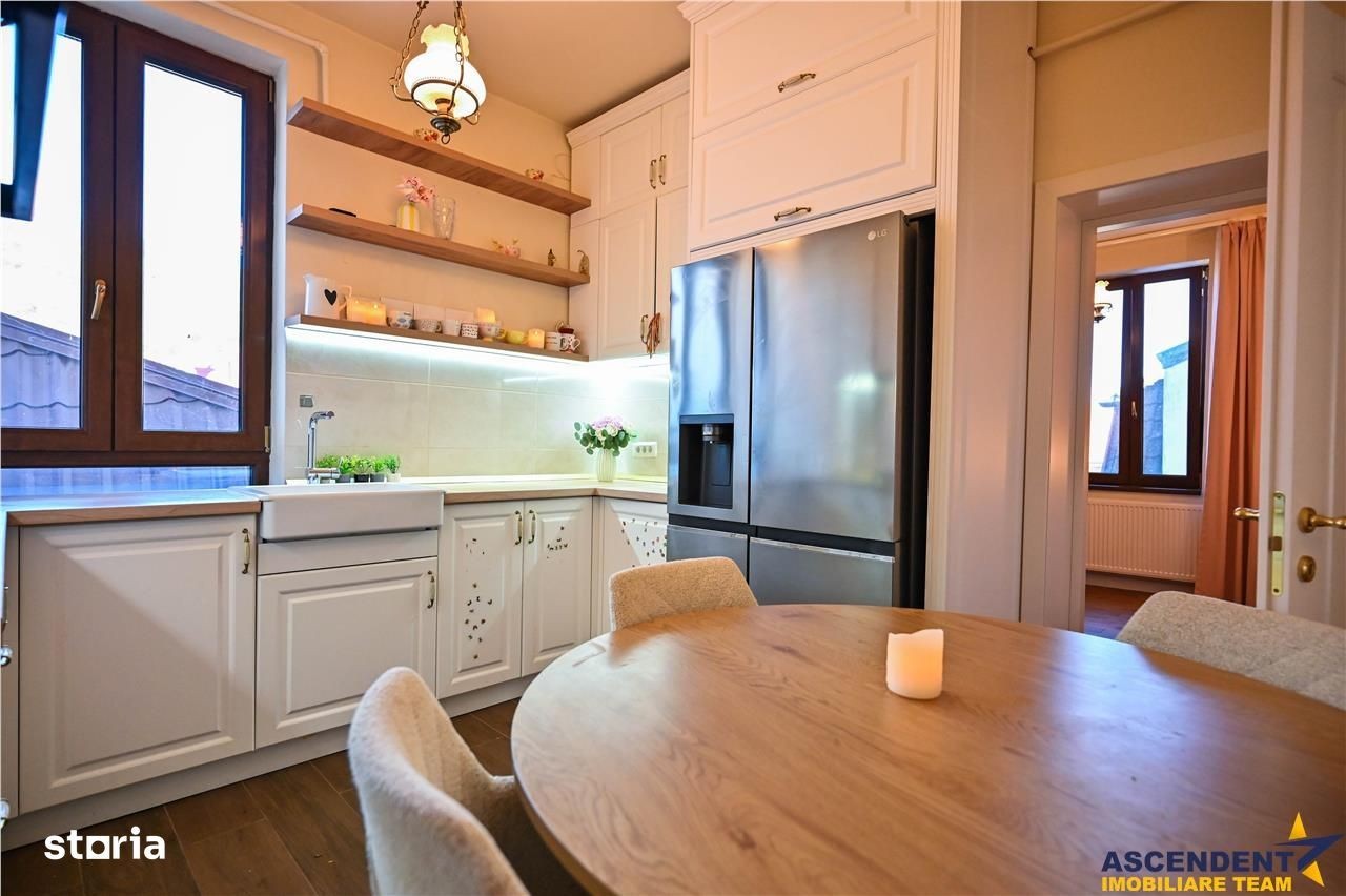 Comision cumparator: 2% + TVA din contravaloarea sumei de tranzactionare. ASCENDENT IMOBILIARE propune spre vanzare un apartament insorit, situat in vila, cu vedere la muntele Tampa, privilegiat si de pozitionarea in Cetatea Istorica a orasului Brasov, in vecinatatea obiectivului de patrimoniu cultural, cunoscut sub numele de Piata Prundului. Resedinta este dispusa pe un singur nivel, la al doilea etaj al vilei, desfasurata actualmente pe urmatoarea configuratie: antreu, bucatarie inchisa mobilata si utilata, camara, trei dormitoare, distincte, debara, living generos delimitat de arcade, doua bai si o curte de 122 mp. Deasemenea proprietatea mai detine la parterul vilei o boxa de 5 mp si o anexa de 12 mp, securizata cu intrare separata, cu sursa de apa si curent electric ceea ce permite dezvolatarea a diferite activitati independente, birou, atelier, croitorie, etc. Va invitam sa experimentati o vizionare initiala, din locatia unde va aflati, chiar acum, prin accesarea filmului de prezentare: s: watch?v=DQCD0ZfgAtE Rezidenta a fost reamenajata integral la cele mai inalte standarde, recent, 2024: instalatii sanitare, electrica, centrala, parchet triplustratificat, tripane securizate cu cheie, usi din lemn masiv la comanda. Toate lucrarile, centrala si electrocasnicele beneficiaza de garantie pana la finalul anului 2026. Aceasta proprietate se evidentiaza si prin pozitionarea in imediata apropiere, a recunoscutelor puncte de atractie turistica si locala, dintre care amintim: Prima Scoala Romaneasca, Legendarele Troite, Poarta Schei, Pietrele lui Solomon, Biserica Neagra etc., izvoare de legende si traditii locale. Desigur ca particularitatea ofertei si detaliile particulare ce o configureaza, invita la cunoasterea in detaliu! Recomandam proprietatea atat pentru segmentul investitional cat si celor ce isi doresc sa locuiasca intr-o zona centrala incarcata de istorie. Certificat Energetic proprietate: Cladire certificată clasa A consum anual specific de energie [KWh m²an] 75.5 Indice de emisii echivalent CO2 [KgCO2 m²an] 14.75 Consum anual specific de energie din surse regenerabile [kWh m²an] 0 Consilier specializat pe aleasa oferta: domnul Florin Tonu Telefon WhatsAp: