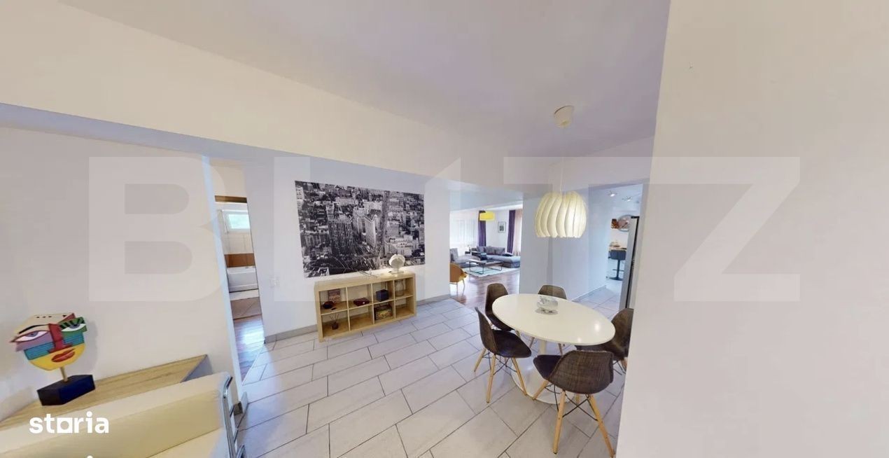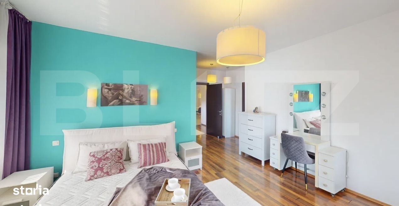 Blitz ofera spre închiriere o oportunitate rara! Un apartament deosebit, cu 4 camere in suprafata de 135 mp utili. Situat într-o zona exclusivistă. Locație, de top, Plopilor, Complex Semiluna-Parcul Rozelor cu vedere spre terenurile de tenis Winners Club. Apartamentul este situat la etajul 3/10 intr-un imobil dotat cu 2 lifturi. Compartimentarea este semidecomandata: 3 dormitoare, living open space cu bucatarie, 2 bai echipate complet, hol, debara si o terasa in suprafata de 50 mp cu iesire din fiecare incapere, ideal pentru relaxare. Apartamentul se ofera spre inchiriere mobilat si utilat cu gust, in stil modern si calitate. Detine: masina de spalat haine si uscator de haine, masina de spalat vase, plita, hota, cuptor, cuptor cu microunde, seif pentru valori, ventiloconvectoare care incalzesc cat si racesc temperatura din apartament in functie de anotimp. Dormitorul matrimonial are baie proprie, iar geamurile au montate rulouri electrice pentru un plus de confort și un somn mai profund. Apartamentul este complet mobilat și utilat, amenajat cu mult bun gust în stil modern, fiind ideal pentru un cuplu sau o familie, inclusiv cu copii. Esti iubitor de animale? Perfect, suntem pet friendly! Include 1 loc de parcare în garajul subteran. Va asteptam la vizionare pentru a va convinge de frumusetea locatiei!