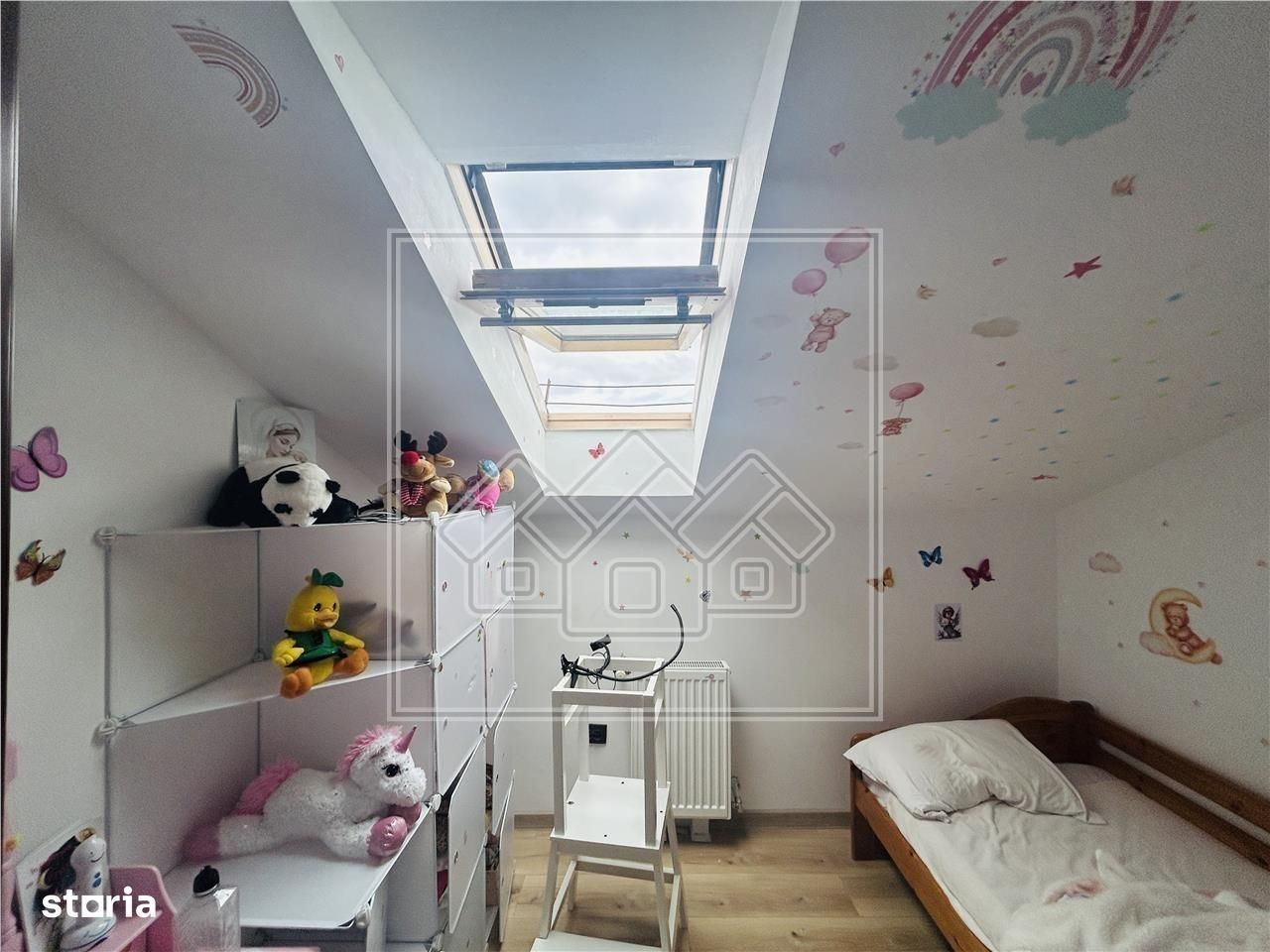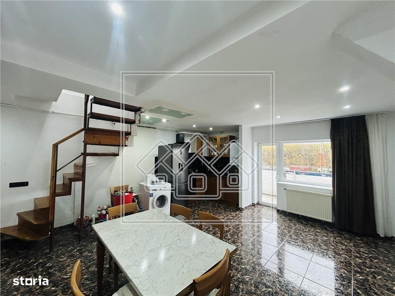 Apartament de vanzare in Sibiu ? 3 camere, tip mansarda pe 2 niveluri ? zona Valea Aurie Agentia Imobiliara New Concept Living ofera spre vanzare un apartament tip mansarda cu 3 camere, situat in zona Valea Aurie, una dintre cele mai cautate si linistite zone rezidentiale din Sibiu. Proprietatea este intabulata pe ambele niveluri si se preda asa cum se vede in poze. Avantaje apartament: Mansarda pe 2 niveluri, ambele intabulate Suprafata utila:?62 mp + balcon mare Zona Valea Aurie ? linistita, aproape de parcuri, scoli si magazine Compartimentare practica, ideala pentru o familie Pret avantajos, potrivit si pentru investitie Detalii apartament: Apartamentul este situat la etajul 5 (din 5) al unui imobil din zona Valea Aurie Suprafata utila de 62 mp Balcon spatios de 7 mp. Proprietatea este dispusa pe 2 niveluri, dupa cum urmeaza:Nivel 1: living open space cu zona de gatit si iesire pe balcon si?Nivel 2: doua dormitoare si o baie Apartamentul se afla in curs de renovare, necesitand unele imbunatatiri, insa reprezinta o oportunitate excelenta pentru cei care doresc sa-si personalizeze propria locuinta. Locatie: Apartamentul este amplasat in zona Valea Aurie, o zona rezidentiala apreciata pentru accesul facil catre centru si zonele verzi din apropiere (Parcul Sub Arini, Zoo, Padurea Dumbrava). Accesul se face pe strazi asfaltate si iluminate, iar in apropiere se afla magazine, scoli, gradinite si statii de transport in comun. ID intern: 22891