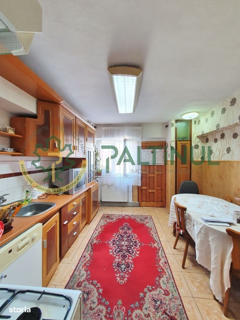 Se oferă spre închiriere un apartament cu 4 camere, situat la etajul 2 al unui bloc solid cu 6 niveluri, construit în jurul anului 1993, pe strada Mihai Viteazul - una dintre cele mai căutate zone rezidențiale din Sibiu. Clădirea este dotată cu interfon, acoperiș din țiglă și are doar 3 apartamente pe palier, ceea ce oferă liniște și un mediu plăcut. Apartamentul are o suprafață utilă de aproximativ 90 mp, este decomandat și dispune de o compartimentare practică: living generos 3 dormitoare separate bucătărie închisă cu cămară baie principală cu cadă WC de serviciu hol larg balcon de aproximativ 6 mp, cu zonă de depozitare închisă (cămăruță) Locuința nu este modernă, dar este curată, spațioasă și complet funcțională - ideală pentru o familie, studenți sau persoane care apreciază un apartament mare într-o zonă excelent conectată. Avantaje cheie: etaj intermediar - 2 din 6 compartimentare decomandată zonă verde, accesibilă, aproape de magazine, școli, grădinițe și transport public două băi - baie principală + toaletă de serviciu balcon generos cu vedere spre curtea interioară disponibil imediat Paltinul Imobiliare - 23 de ani de încredere pe piața imobiliară sibiană. Contactează-ne pentru detalii suplimentare sau pentru programarea unei vizionări!