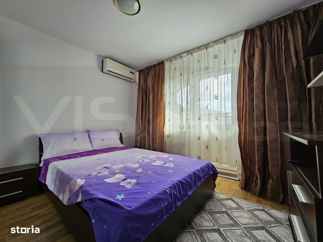 Apartament 2 camere, de închiriat, zona de jos, situat la etajul 4, apartamentul este decomandat, dotat cu centrală termică proprie, aer condiționat, tâmplărie PVC c ugeam termopan, 2 balcoane. Preț: 250 Euro/luna.