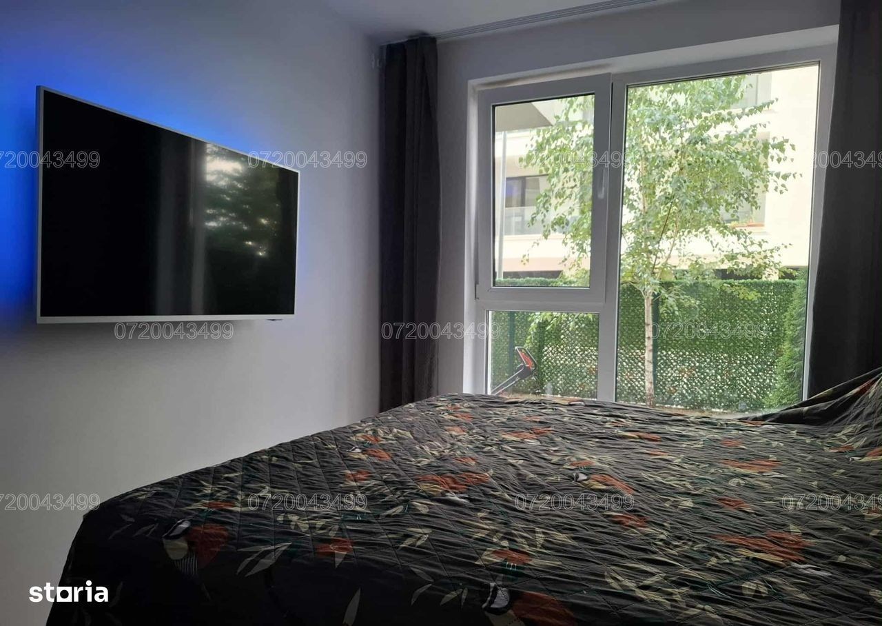 Prima inchiriere, direct proprietar: un apartament cu 2 camere in Pipera (Rond OMV), cu gradina privata si acces din locul de parcare. 250 m pana la statie de autobuz Soseaua Bucuresti Nord, in apropriere Carrefour 50m, gradinita 200m. Apartamentul are 57,7 m2 (din care 3,6 m2 terasa), gradina privata 31 m2, este situat intru un complex residential cu video supraveghere. Apartamentul detine loc de parcare propriu cu acces direct din curte. Este mobilat complet, finisaje lux si mobila la comanda. Detine incalzire in pardoseala, aer conditionat, masina de spalat si uscat rufe, bucatarie la comanda cu toate electrocasnice incorporabile (masina de spalat vase, hota, plita inductie, cuptor si microunde, frigider), termostat digital, centrala proprie, interfon video, 2 TV ambilight, mobila pentru terasa si gradina, pat matrimonial 180 cm, sofa extensibila. Disponibil de mutat de la data 26.10.2025. Se accepta animale de companie.