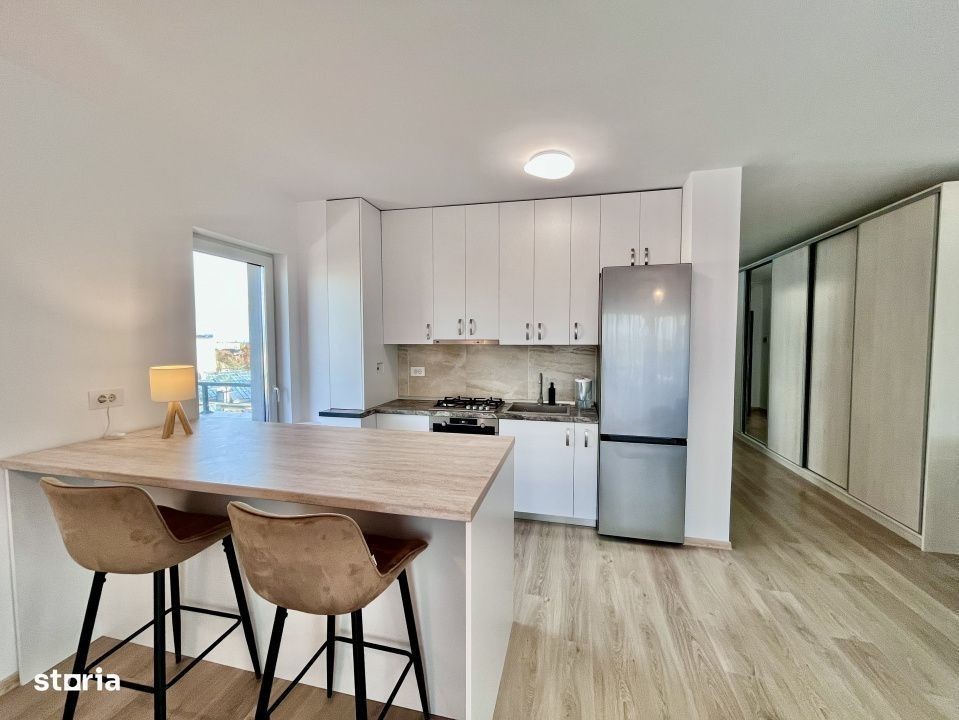Vă propunem spre închiriere un apartament modern, situat într-un bloc nou, finalizat în 2021, ce îmbină confortul, eleganța și tehnologia într-un spațiu rafinat și primitor. Cu o suprafață utilă de 58 mp și două balcoane generoase de 14 mp. Locuința oferă o panoramă superbă către Tâmpa și stadion, beneficiind de orientare pe trei părți și luminozitate naturală pe tot parcursul zilei. Situat la etajul 4 din 11, apartamentul este mobilat și utilat complet, pregătit să ofere tot confortul necesar noilor chiriași. Dispune de un dormitor primitor, o baie modernă cu geam pentru aerisire naturală, precum și o bucătărie open-space integrată armonios cu livingul spațios. Dotările includ: • Încălzire în pardoseală, pentru un confort termic optim; • Calorifer suplimentar în baie; • Centrală termică proprie cu sistem smart de control; • Interfon, senzori de apă și toate facilitățile unui apartament inteligent; • Loc de parcare suprateran, vizibil direct de la fereastră; • Boxă de depozitare inclusă. Apartamentul este disponibil pentru închiriere pe termen lung (minim un an), cu o garanție de 700€. Pentru mai multe detalii și pentru a programa o vizionare, contactați-ne.