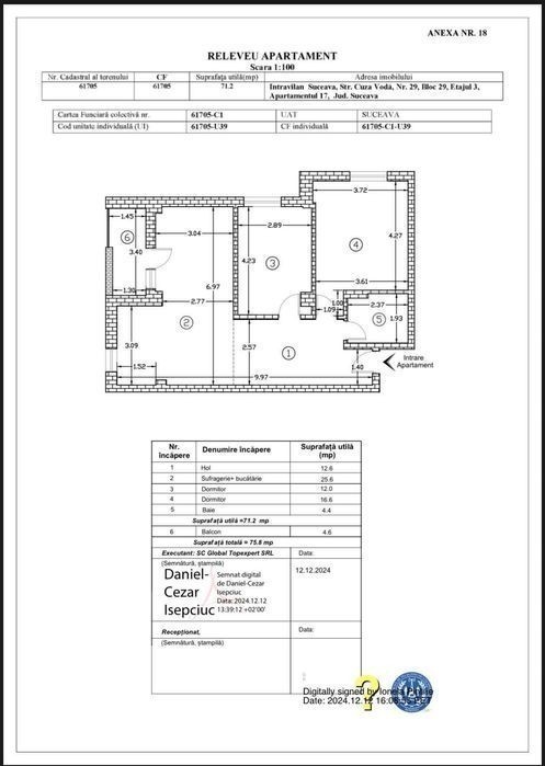 Oferim spre vânzare apartament în bloc nou Coloseum Residence. Vă prezentăm ultimul apartament ramas in blocul nostru, cu o suprafață utilă de 71,2 MP și balcon de 4,6 MP, situat la etajul 3, apartament 17. Detalii apartament: • Suprafață optimizată pentru confort • Compartimentare modernă și practică • Materiale de calitate și finisaje premium • Balcon pentru momente de relaxare • Bucătărie spațioasă și luminoasă • Baie elegantă cu dotări moderne Facilități Colosseum Residence: • Loc de parcare inclus! • Acces rapid la mijloace de transport, magazine și instituții de învățământ • Spații verzi și zone de recreere • Clădire construită după standarde moderne, eficientă energetic Locatie: Strada Cuza Vodă nr. 29. Preț: 120.600 € (TVA inclus!) Pentru detalii și vizionări, contactează-ne acum!