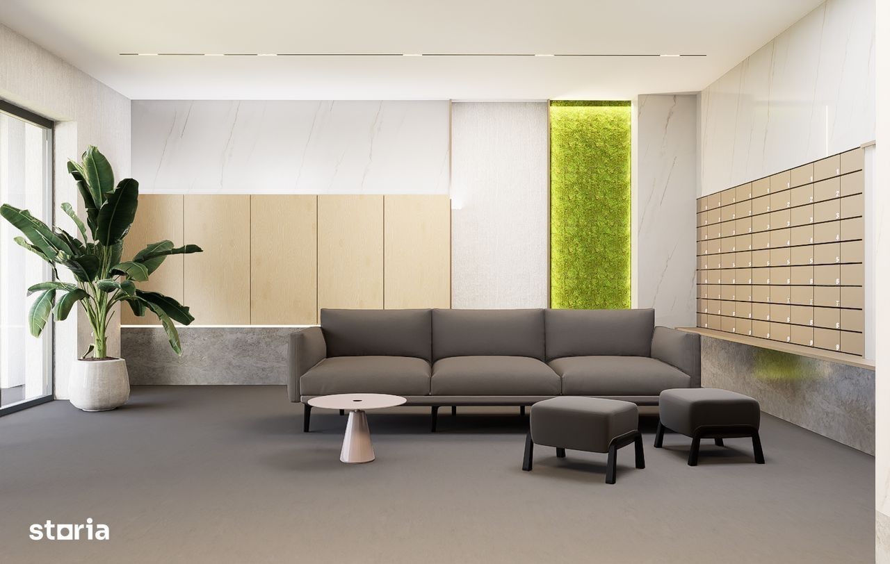 • Ansamblu modern pe 5 ha, cu 28.000 mp spații verzi și parc privat de 6.000 mp • 9 blocuri cu 2 lifturi Schindler/bloc, lobby-uri elegante și acces securizat • Fațadă ventilată tip BOND și ferestre panoramice tripan Salamander - Saint-Gobain