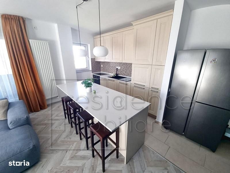 Residence Imobiliare va ofera spre inchiriere un apartament modern cu 3 camere situat la etajul 7 din 8 intr-un imobil nou dotat cu doua lifturi, din Cluj-Napoca, cartierul Buna Ziua, zona LIDL, in Sophia Residence, un complex intr-o zona linistita, cu multa verdeata, cu loc de joaca pentru copii, sala de fitness proprie si teren de fotbal, si tot odata aproape de mijloacele de transport in comun. Apartamentul are o suprafata de 78 mp si este semidecomandat, compus dintr-un living deschis cu bucataria, un dormitor, o camera de dressing care se poate tranform intr-un dormitor secund, doua bai, un hol si o terasa generoasa cu priveliste minunata asupra orasului. Se ofera spre inchiriere complet mobilat si utilat, folosindu-se materiale de calitate superioara, inclusiv cu masina de spalat vase, aer conditionat si Smart TV, si mai dispune de centrala de imobil cu contorizare separata, avand eficienta energetica clasa A. In pretul de inchirere este inclusa o parcare subterana, este ideal pentru una-trei persoane si este disponibil imediat!