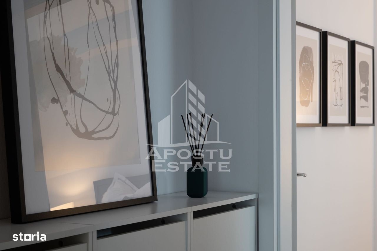 Apostu Estate va propune spre inchiriere un apartament modern cu 2 camere, situat intr-un imobil nou finalizat in anul 2023, in inima cartierului Bucovina. Locuinta este luminoasa, renovata complet, cu mobilier si electrocasnice noi. Caracteristici principale: - Suprafata utila: 52 mp - Camere: 2 (living + dormitor) - Bai: 1 - Etaj: 5 - Balcon generos - Centrale proprie cu incalzire prin radiatoare - Aer conditionat Compartimentare: - Living cu zona de luat masa - Bucatarie open space complet mobilata si utilata (Electrolux si Miele) - Dormitor - Hol cu spatiu de depozitare - Baie cu obiecte sanitare de calitate Vecinatati si puncte de interes: - Parcul Bucovina (vizavi) - Profi Non Stop - 2 min - Smartfit - 5 min - Farmacii, brutarii, restaurante - 5-7 min - Piata Dacia - 9 min - Lidl - 12 min - Vox - 10 min - Iulius Town - 15 min Mijloace de transport in comun: - Statia Matei Basarab - 3 min (tramvai 4 dupa finalizarea lucrarilor) - Statia Miresei/Calea Torontalului - 5 min (autobuze E1, E6, M44, M50, troleibuz 18, tramvai 4 dupa finalizare) Dotari si beneficii: - Complet mobilat si utilat - Electrocasnice noi: masina de spalat rufe Miele, frigider, plita electrica, cuptor si hota Electrolux - Internet WIFI + LAN - Supraveghere video si detectoare de fum - Finisaje premium: tamplarie PVC, usi Porta Door, pardoseala laminat si gresie, vopsea lavabila Benjamin Moore Conditii de inchiriere: - Disponibilitate: Imediat - Perioada minima: 12 luni - Cheltuieli medii: ~500 lei/luna - Garantie: 2 luni - Locuri de parcare se gasesc la discretie pe strada imobilului sauin vecinatate. - Nu se accepta animale de companie - Fumat permis doar pe balcon Va asteptam cu drag la o vizionare!