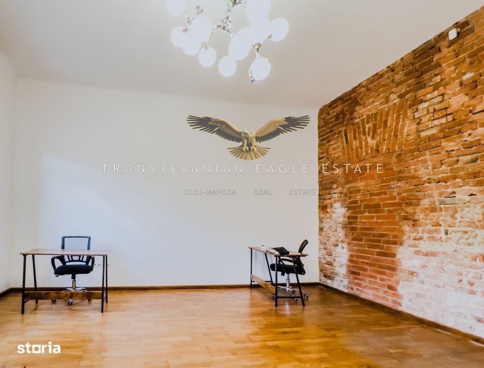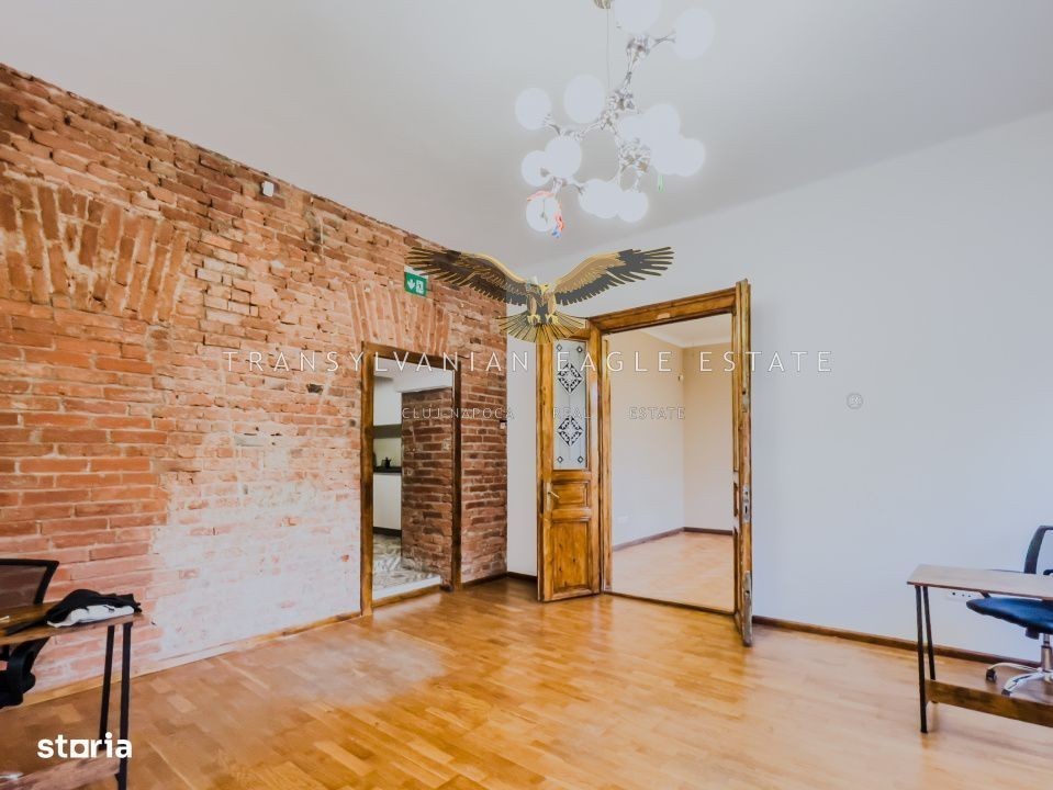 Situat pe o suprafață utilă de 66 m2, această locuință se situează lângă Parcul Central-Horea-Piata Muzeului. Spațiul este recent renovat, cablajele realizate sunt ideale pentru orice firmă de IT, clădirea fiind una aparte într-un stil neogotic emblematic pentru Cluj-Napoca. Structura interioară este una semidecomandata, având următoarea compartimentare: - prima cameră mobilată parțial cu birouri; - a doua cameră; - bucătărie utilată și mobilată complet; - baie modernă. Locuința se situează la parterul unei construcții aparte care este monument istoric în stil neogotic emblematic pentru istoria orașului Cluj-Napoca. Priveliștea camerelor este înspre Someș, ceea ce oferă o caracteristică unică. Așadar, dacă sunteți o firmă care e în căutarea unui spațiu aparte situat în zona centrală a orașului Cluj-Napoca, acest spațiu reprezintă oportunitatea ideală.