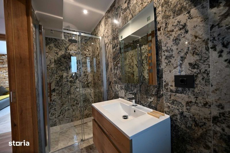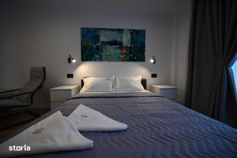 Apartament de lux in aparthotel, cu licenta turistica, se vinde complet mobilat si utilat, cu servicii de receptie si curatenie asigurate. Apartamentele sunt contorizate individual, incalzirea este asigurata cu centrala termica in condensatie Viessmann si calorifere, finisaje de marmura, tamplarie Veka cu geam tripan. Imobilul dispune de un amplu spatiu de petrecere a timpului liber situat la demisolul cladirii, dotat cu masa de biliard, air-hockey, fuss-ball, darts, masa de ping-pong, jocuri de societate. Hotelul dispune de parcare pentru 20 de masini, iar accesul la etajele superioare se face cu lift Otis pentru 8 persoane. Apartamentul are un randament de app 8%. Adresa: Mihai Viteazul nr. 6, Predeal