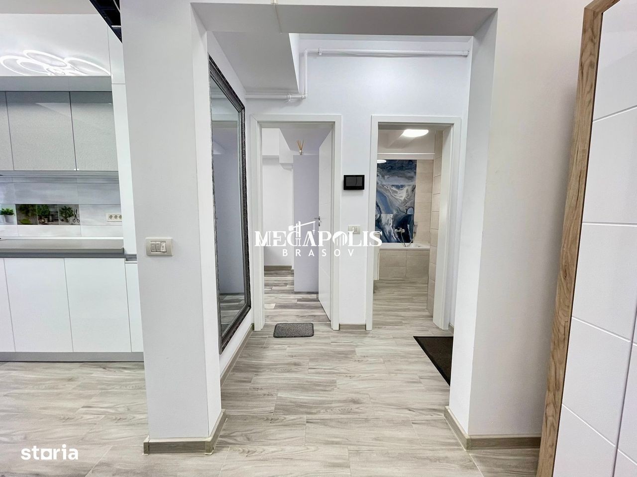 Vă oferim spre închiriere un apartament modern cu 2 camere open space, situat în cartierul Tractorul în complexul rezidențial Bella Vista, pe Strada Nicolae Labiș, la doar câteva minute de Coresi Shopping Resort. Detalii apartament: - Suprafață: 45 mp - Compartimentare: dormitor, living open space împreună cu bucătărie, baie, hol. - Mobilat și utilat complet - Electrocasnice: frigider, mașină de spălat rufe, mașină de spălat vase, cuptor, plită, TV. Facilități incluse în preț: - Loc de parcare propriu Detalii importante: - Garanție 500 € - Comision agenție: 50% din chiria primei luni. - Nu se acceptă animale de companie. Pentru mai multe detalii contactați-mă telefonic: