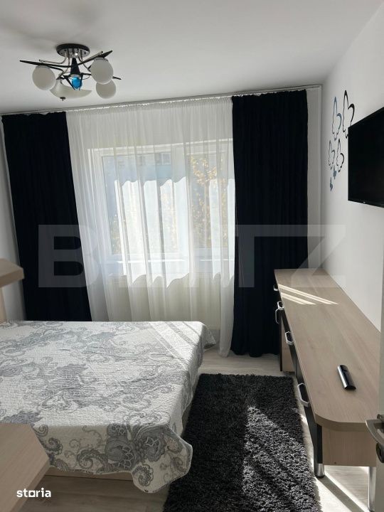 Blitz Imobiliare Targoviste vă propune spre închiriere un apartament cu 2 camere semidecomandat., însorit toată ziua, zona Scoala 8. Suprafața utilă: 54 mp Etaj: 3 din 4 Tip construcție: bloc de apartamente (construit în 1978) Balcoane: 1 Băi: 1 Dotări și utilități: -Centrală termică proprie -Geamuri termopan -Ușă metalică -Aer condiționat Mobilare: complet mobilat și utilat Locuri de parcare: disponibile în zonă (fără garaj) Alte detalii: -Este prima închiriere -Animale de companie: nu sunt acceptate -Tip chiriaș dorit: familie