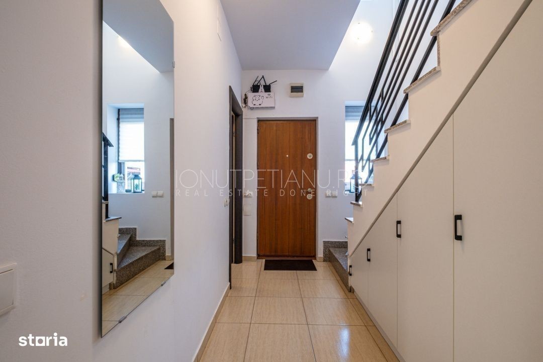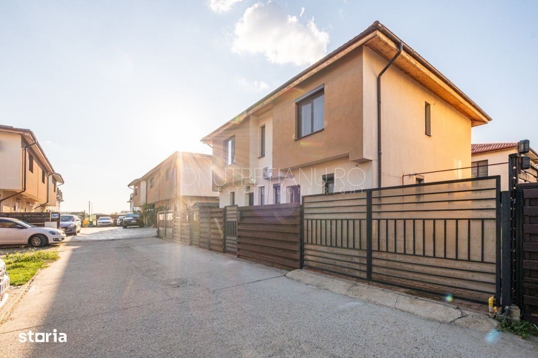 Casă de vânzare în Otopeni, într-un complex rezidențial liniștit și prietenos Situată într-o zonă aerisită, cu acces facil către București, această casă este alegerea ideală pentru o familie care își dorește confort, intimitate și o comunitate sigură. La parter, te întâmpină o zonă de living spațioasă, cu bucătărie open-space, perfectă pentru momentele petrecute alături de familie sau prieteni. Tot aici găsești și o, utilă și bine poziționată. La, sunt și o. Fiecare cameră oferă suficient spațiu pentru relaxare și depozitare, iar compartimentarea este gândită pentru confortul zilnic. În exterior, casa se bucura de o, ideală pentru cafeaua de dimineață sau seri relaxante, și de. Gazonul este întreținut cu un, astfel încât timpul liber chiar rămâne pentru tine. Rulouri pentru intimitate și confort termic Sistem de irigații programabil, întreținut de proprietar Terasă acoperită, perfectă pentru relaxare sau grătar Costuri mici de întreținere Cartier sigur, prietenos cu familiile și copiii Stație de transport public chiar la ieșirea din complex Pentru mai multe detalii sau o vizionare, nu ezita să mă contactezi.Aceasta nu este doar o casă - este un loc unde te poți simți acasă din primele 5 minute.