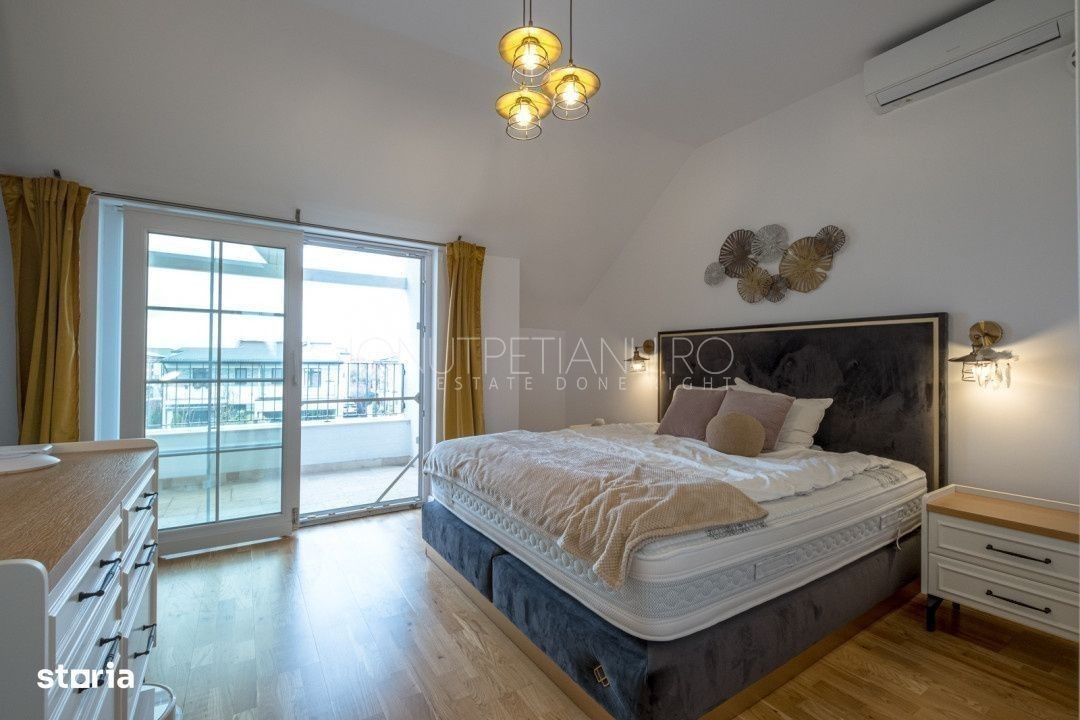 Vila moderna de inchiriat in Otopeni - gata de mutare! Descopera aceasta vila moderna si confortabila, situata intr-o zona linistita din Otopeni, aproape de toate facilitatile esentiale. Complet mobilata si utilata, este pregatita sa te gazduiasca! - spatiu generos, compartimentare inteligenta - living luminos, bucatarie open space, 3 dormitoare, 3 bai - dormitor matrimonial cu dressing si terasa proprie - parchet din lemn masiv, incalzire in pardoseala - spatiu verde, terasa perfecta pentru seri linistite - unul in lateral, unul pe strada Acces rapid la DN1, Aeroportul Otopeni, supermarketuri, restaurante, etc. Unele dintre piesele de mobilier din fotografii apartin chiriasului actual si vor fi luate de catre acesta. Aceasta vila poate fi a ta chiar acum! Programeaza o vizionare si descopera confortul unui camin premium.