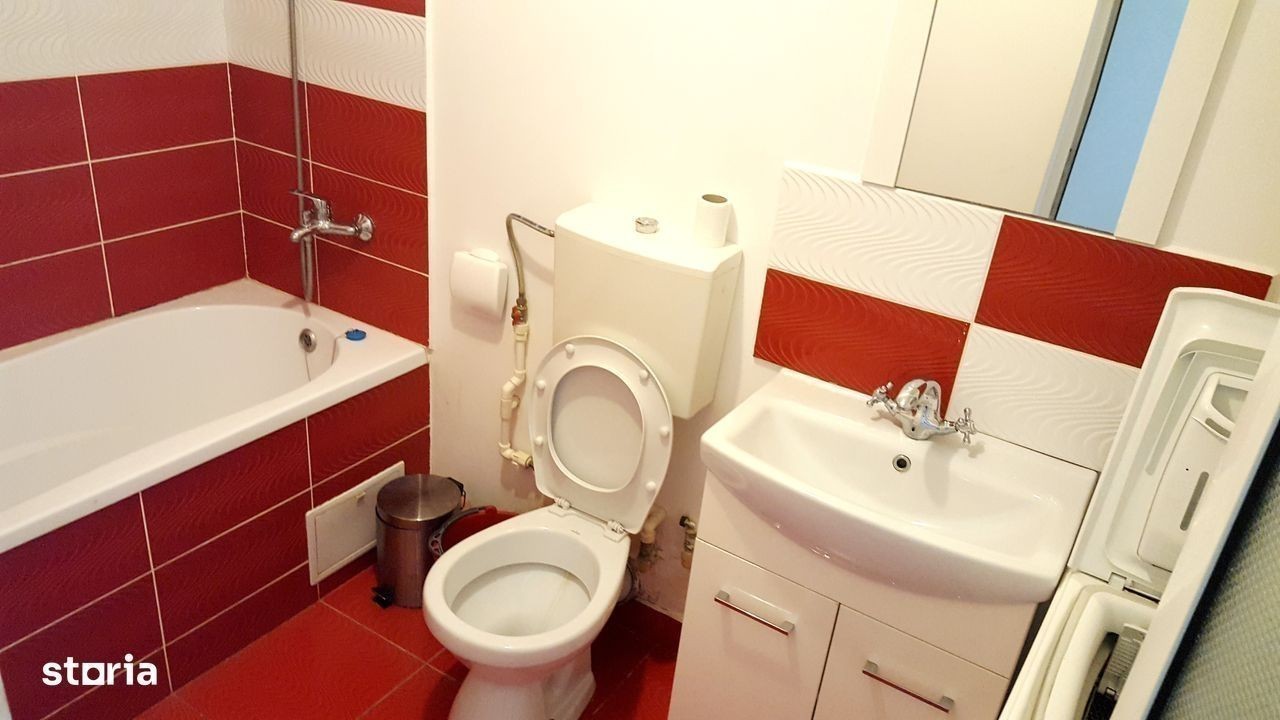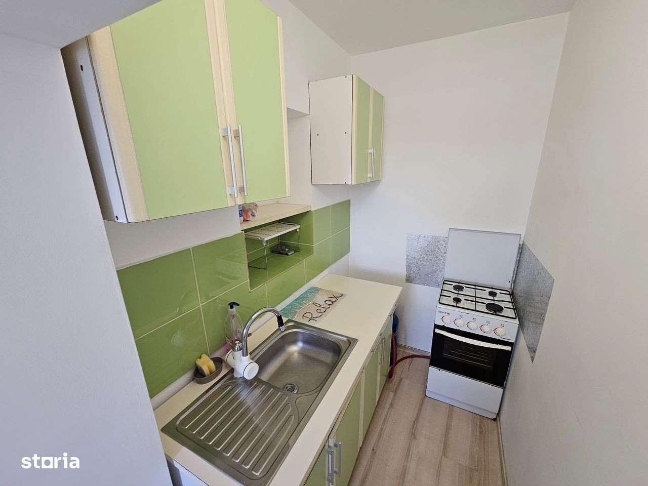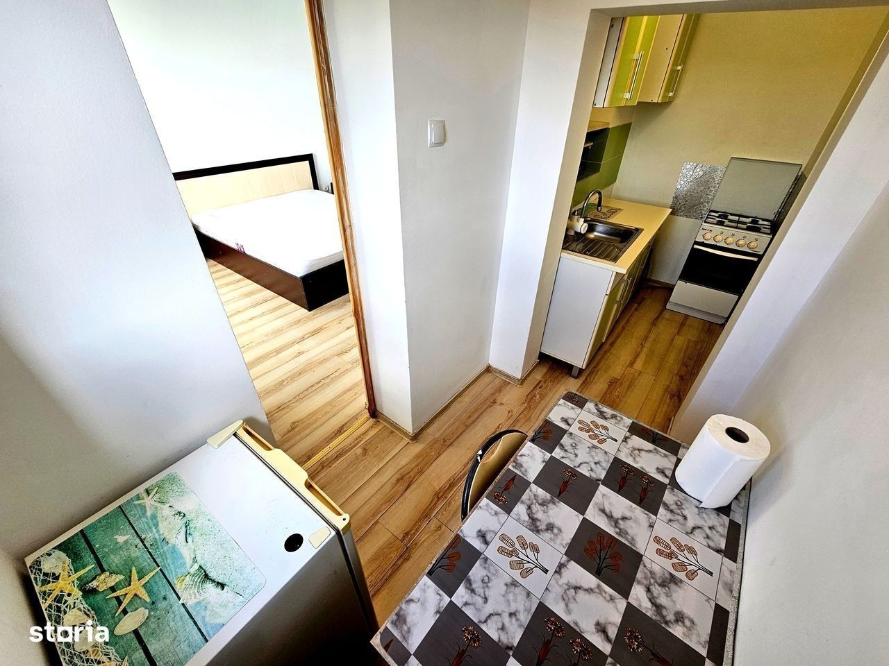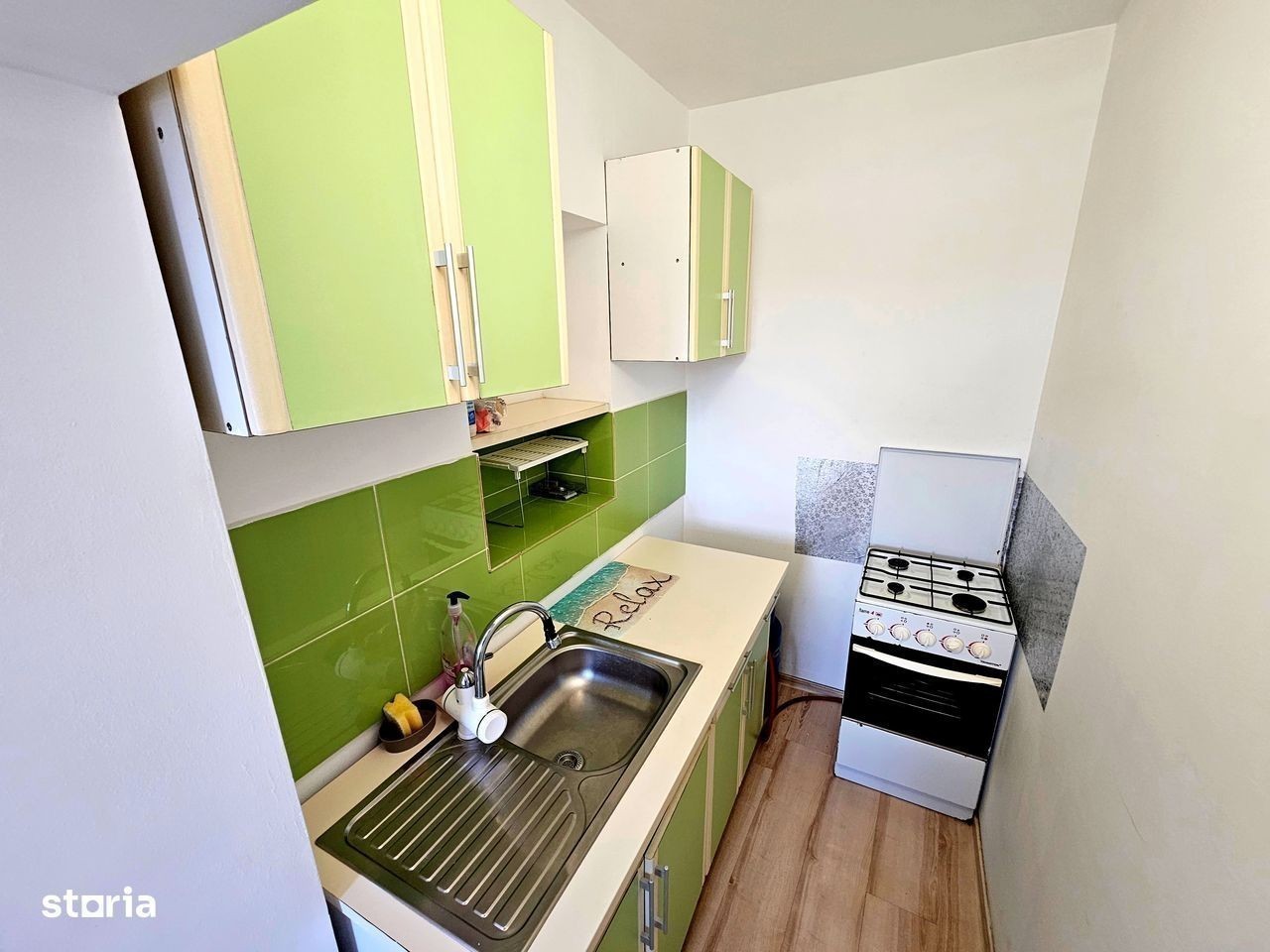 Această garsonieră de 32 mp se află la etajul 4 al unui bloc din beton. Are mobilier modern și echipamente precum mașină de spălat, frigider și TV. Este gata pentru mutare și disponibilă din noiembrie 2025. Locuința are un dormitor cu parchet laminate și un living cu mobilier contemporan. Bucătăria separată include toate electrocasnicele necesare. Baia are finisaje în nuanțe de rosu și alb, cu gresie modernă.