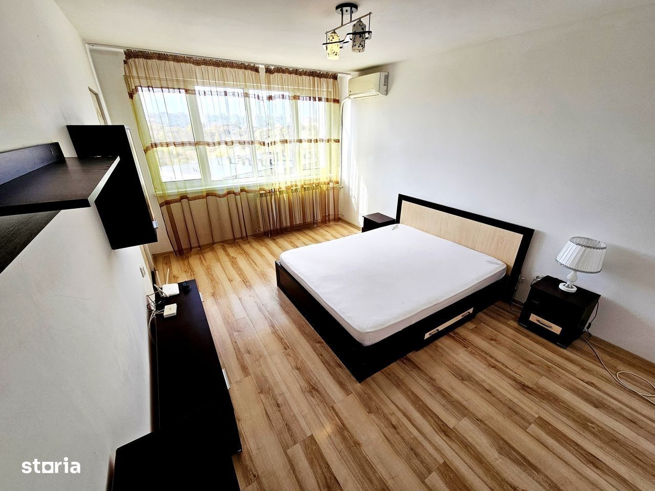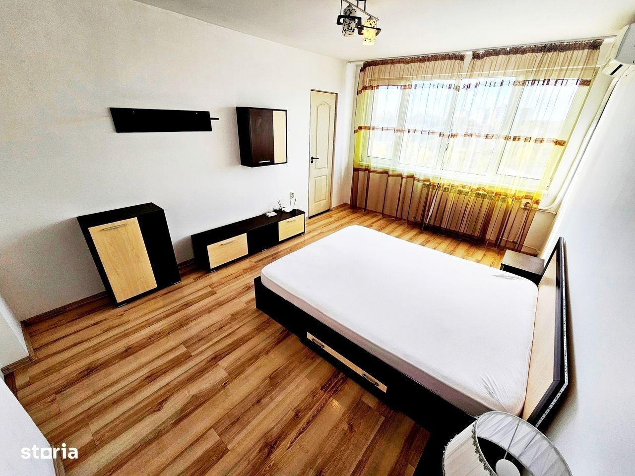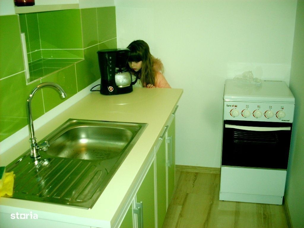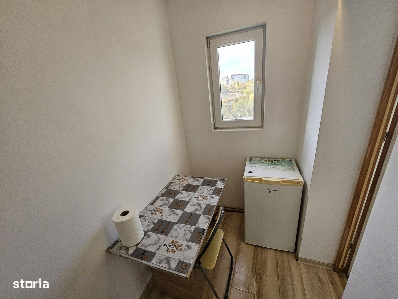 Această garsonieră de 32 mp se află la etajul 4 al unui bloc din beton. Are mobilier modern și echipamente precum mașină de spălat, frigider și TV. Este gata pentru mutare și disponibilă din noiembrie 2025. Locuința are un dormitor cu parchet laminate și un living cu mobilier contemporan. Bucătăria separată include toate electrocasnicele necesare. Baia are finisaje în nuanțe de rosu și alb, cu gresie modernă.