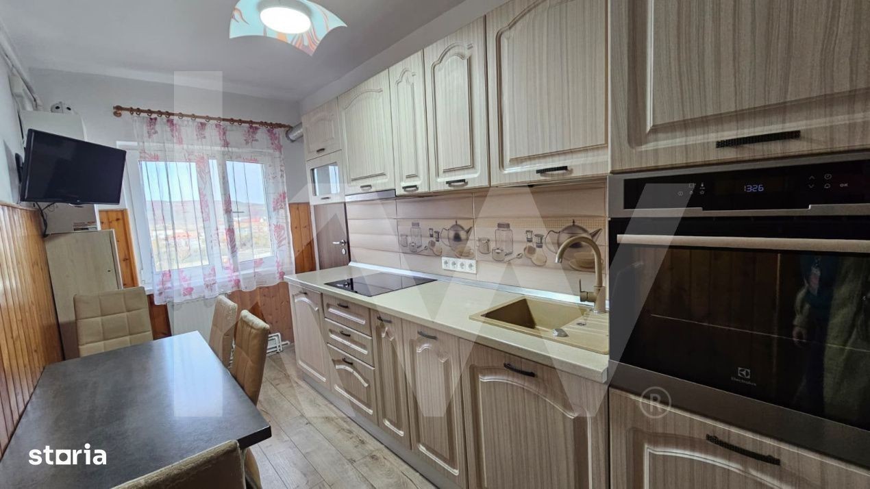 Apartament de închiriat în Sibiu - zona Semaforului, deasupra magazinului Bârza. Apartamentul este situat la etajul 4 din 10, într-un imobil cu lift, și a fost recent renovat. Dispune de: centrală pe gaz nouă cu calorifere 2 băi 1 balcon bucătărie complet utilată (mașină de spălat vase, cuptor electric, plită cu inducție, frigider), mașină de spălat rufe dormitor cu pat de 180 cm dormitor mic cu pat de 90 cm living cu canapea extensibilă Apartamentul este luminos, curat și primitor, ideal pentru o familie cu copii. Preț: 470 euro, negociabil.
