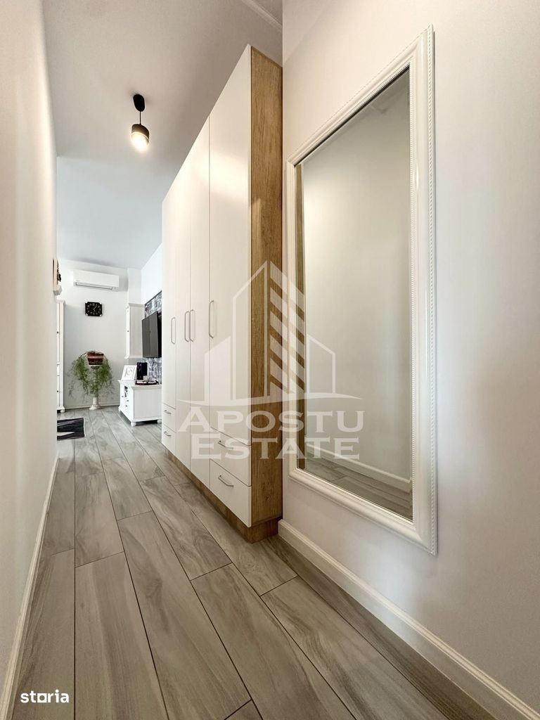 APOSTU ESTATE va propune spre vanzare un apartament premium cu 2 camere, situat la etajul 1 intr-un ansamblu rezidential exclusivist din Giroc, finalizat in 2021. Locatia ofera echilibrul perfect intre liniste si accesibilitate - ai aproape magazine precum Lidl, Mega Image, scoala si gradinita la o distanta de 5 minute si mijloace de transport, iar drumul pana in oras este rapid si confortabil datorita accesului asfaltat si iluminat. Complexul ofera un stil de viata exclusivist, cu piscina privata, spatii verzi amenajate, lift modern si acces complet privat, ideal pentru cei care apreciaza confortul, siguranta si intimitatea. Apartamentul se vinde complet mobilat si utilat, disponibil imediat pentru noul proprietar. Detalii: - suprafata utila: 53 mp + balcon de 10 mp - compartimentare open-space, foarte luminoasa si primitoare - living spatios cu mobilier din lemn masiv - bucatarie complet mobilata si utilata - mobilier din MDF facut pe comanda, frigider incorporat, cuptor electric si cuptor cu microunde incorporat, plita pe gaz, hota, masina de spalat vase - baie moderna cu dus tip walk-in - hol acces cu dulap de tip dressing generos si functional - incalzire in pardoseala - gresie tip parchet pentru eficienta termica - geamuri tripan (3 sticle) pentru izolatie fonica si termica superioara, mari - lumina naturala excelenta - clima in living pentru confort pe tot parcursul anului - usi interioare albe din lemn plin, de calitate superioara - usa de acces securizata - loc de parcare subteran inclus in pret Locuinta imbina perfect confortul urban cu linistea unei zone rezidentiale private, fiind ideala atat pentru locuit, cat si pentru investitie. Locul perfect pentru cei care isi doresc sa se intoarca acasa la liniste, dar sa ramana aproape de oras. Pentru mai multe detalii sau programarea unei vizionari, nu ezitati sa ne contactati! Acceptam orice fel de credit bancar. Oferim consultanta si solutii financiare prin colaboratorii nostri pentru a obtine cel mai avantajos credit Ipotecar sau Noua Casa. Va asteptam cu drag la o vizionare chiar astazi! CP2799572