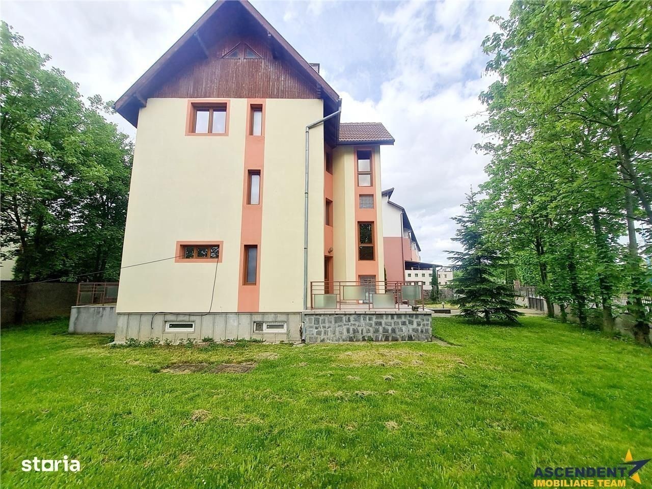 Comision chirias: 50 % +tva, din contravaloarea unei chirie lunare, o singura data Ascendent Imobiliare Va deschide poarta catre o OPORTUNITATE speciala, o vila spectaculoasa, cu aer nobil - un spatiu cu multiple valente - camin business, inspiratie, situata intr un cartier linistit, la doar 10 minute distanta de centrul istoric al orasului. Aceasta resedinta impunatoare cu gradini verzi si terase ample, ofera nu doar confortul unei locuinte moderne, ci si potentialul ideal pentru dezvoltarea unei afaceri de succes, pretabila si pentru investitii medicale sau hoteliere. Ideala pentru: clinica medicala stomatologoca sau de recuperare sediu de firma birouri reprezentative aparthotel regim hotelier de lux Date tehinice: regim de inaltime D+P+E+M suprafata utila 350 mp teren generos 700 mp 7 camere spatioase izolatie termica completa acoperis din tigla geamuri termopane tip PVC aer conditionat Compartimentare si Functionalitati existente: Demisol: garaj, boxa, uscatorie, camera tehnica Parter: living spatios de 40 mp cu bucatarie open space, baie si iesire pe terasa de 30 mp, view spre verde??????? Etaj: 3 camere decomandate, 2 bai, hol generos, 2 balcoane Mansarda 3 camere decomandate, 2 bai, hol generos, 2 balcoane centrala termica proprie cu boiler de 200 lt parchet nou, cosmetizata complet cu vopsea lavabila de 3 luni Infrastructura deja dezvoltata, la doi pasi de tot cr conteaza - magazine, scoli, transport public si acces facil catre principalele artere ale orasului. Este un spatiu care poate deveni cu usurinta o afacere de succes ! Proprietatea cu disponibilitate imediata! Va astept cu drag la vizionari si va doresc o zi cu soare in suflet!: ) Consilieri dedicati acestei oferte: Gilda Georgescu Tel Wapp