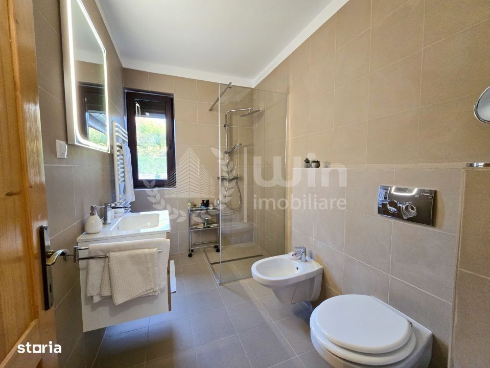 Va propunem spre vanzare casa individuala situata in cartierul Exterior Sud in com. Feleacu. Printre punctele de interes din zona putem aminti: partia de schi Feleacu, unitati scolare. Casa a fost edificata in anul 2016, pe regimul de inaltime: D+P+ M. Terenul total de care dispune proprietatea este in suprafata de 577 mp (raman cca. 400 mp teren liber), iar frontul la strada este de 0 m. Compartimentarea este gandita astfel: -Demisol : 1 bucatarie, 1 baie, 1 hol, 1 camara, 1 spalatorie, 2 pivnite, 1 camera depozitare, 1 garaj (cu suprafata utila 135mp). - Parter: 1 bucatarie, 1 camera de zi, 1 birou, 1 dormitor, 2 bai, 1 hol, 1 sas si 2 terase (cu suprafat utila de 94,49mp) - Mansarda : 2 dormitoare, 3 camere depozitare, 2 bai, 1 hol, 1 sas, 2 terase (cu suprafata utila de 69,53 mp). Proprietatea este ideala pentru o familie care doreste sa beneficieze de liniste, confort, aer curat intr-o locatie aproape de oras dar in acelasi timp retrasa de la zgomotul acestuia. Dispune de locuri de parcare in curte si garaje la subsol. Confortul termic este asigurat de: centrala proprie si de izolatia exterioara. Predarea se face complet mobilata si utilata. Pentru mai multe detalii sau programarea unei vizionari, nu ezitati sa ne contactati! Garantam castigul reciproc. [ ID Proprietate: P11517 ]