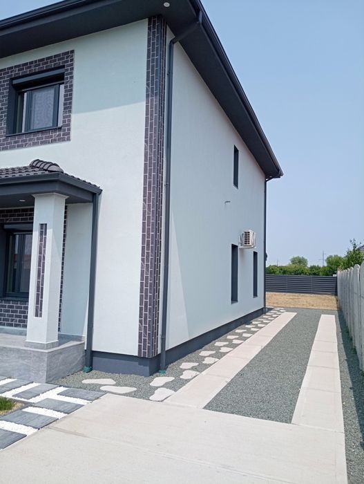 Casă în Dumbrăvița zonă centrală Construcție 2025 Intabulată Apartamentare făcută Apă, canal, gaz, curent, net, tv 120mp util+30mp terase 386mp teren Curte amenajată, împrejmuită cu acces auto Poartă cu telecomandă 3 locuri de parcare Parter Hol acces Dormitor Baie Spațiu tehnic Living Bucătărie Terase Etaj Hol Dressinguri Dormitoare Baie Pod utilizabil cu placă de beton si izolație Termosistem cu tencuială decorativă Încălzire pardoseala Climatizare parter și etaj Instalație electrică Gewiss trifazic Centrală Ariston pe gaz Supraveghere video Curte amenajată Gazon Sistem irigare automat cu foraj propriu Ocupabilă imediat Inf 07******76 Dan