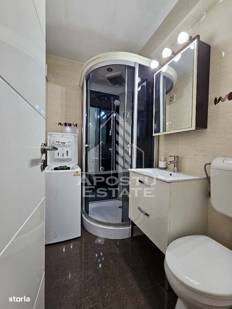 APOSTU ESTATE va propune spre inchiriere un apartament spatios si elegant, cu 2 camere, situat intr-o zona linistita si bine conectata din Tomisoara, ideal pentru cupluri, studenti sau persoane care doresc un spatiu generos si confortabil. Suprafata utila: 50 mp Compartimentare eficienta: Hol de acces generos Bucatarie complet mobilata si utilata, Living luminos si spatios Dormitor matrimonial mobilat Baie principala cu cabina de dus Confort si facilitati: Centrala pe imobil Aer conditionat Apartamentul este complet mobilat si utilat Localizare: Zona Medicina - liniste, acces facil spre oras, in apropiere de magazine, scoli si mijloace de transport in comun. Apartamentul este situat la 5 minute distanta de UMFT si la 10 minute de centul orasului Ideal pentru: Studenti Cupluri Pret chirie: [450 Euro] Garantia este echivalentul unei chirii Programeaza o vizionare! ID intern: CP2800832